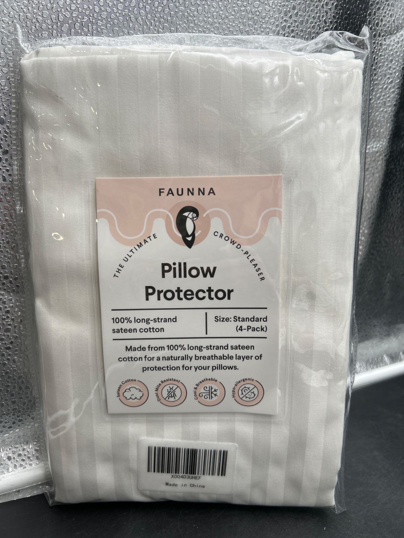 Lot 4144 Faunna Standard Size Pillow Protectors, 100% Long-Strand Sateen Cotton, 4-Pack