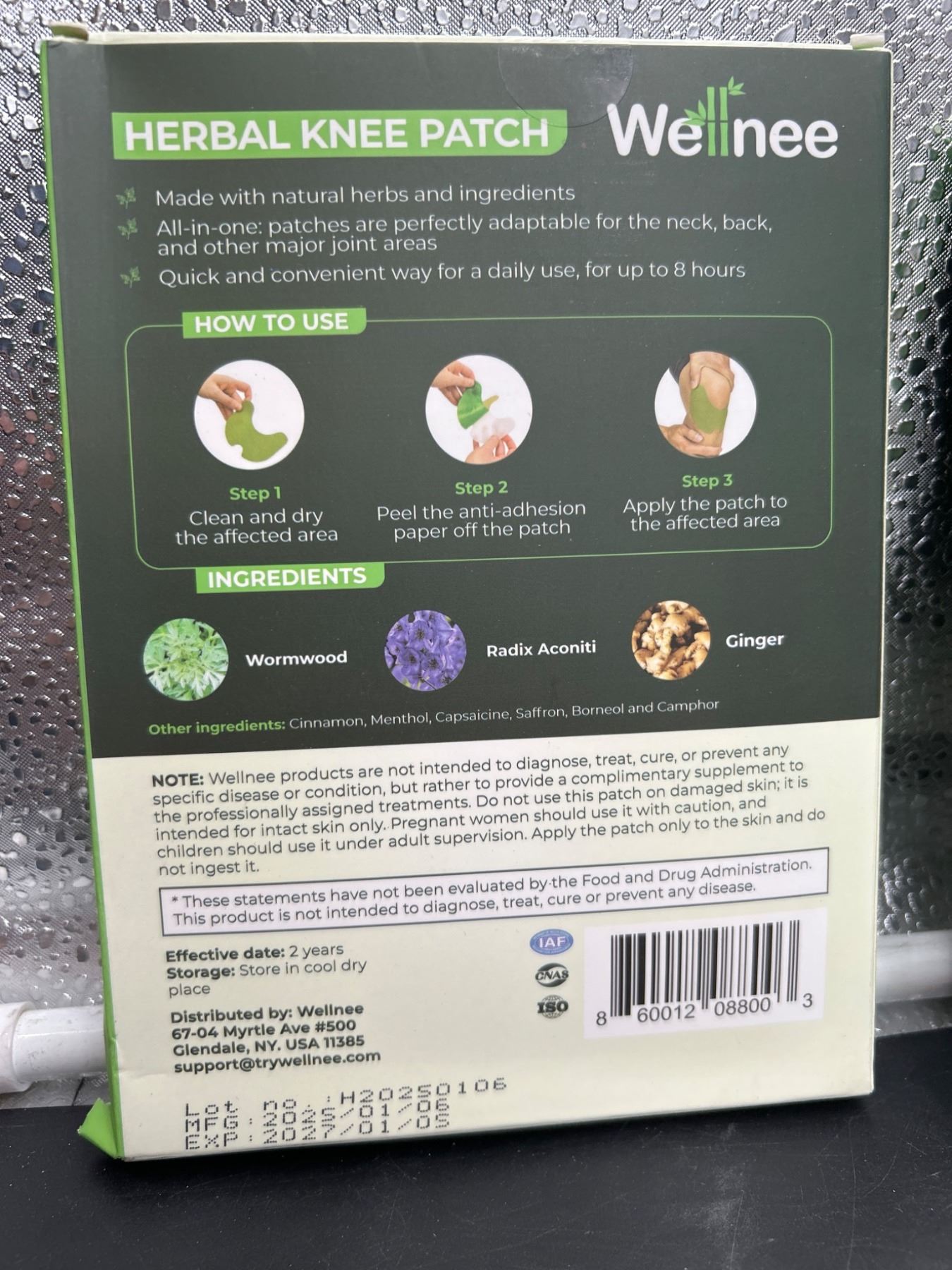 Lot 4155 Lot of 2Â - Wellnee Herbal Knee Patch, Wormwood Formula, 10 Pieces