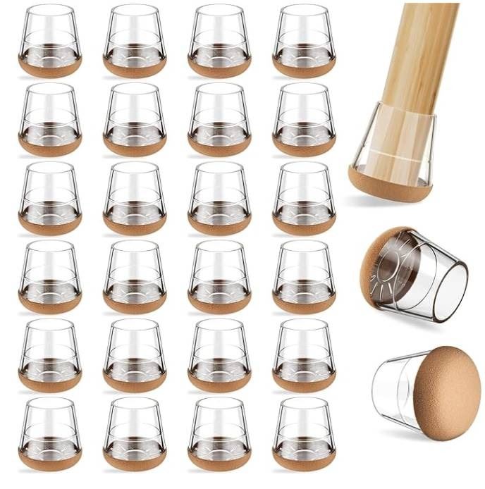 Yomanta 24 Pcs Silicone and Felt Chair Leg Floor Protectors, Round, Large (32–35 mm), Clear