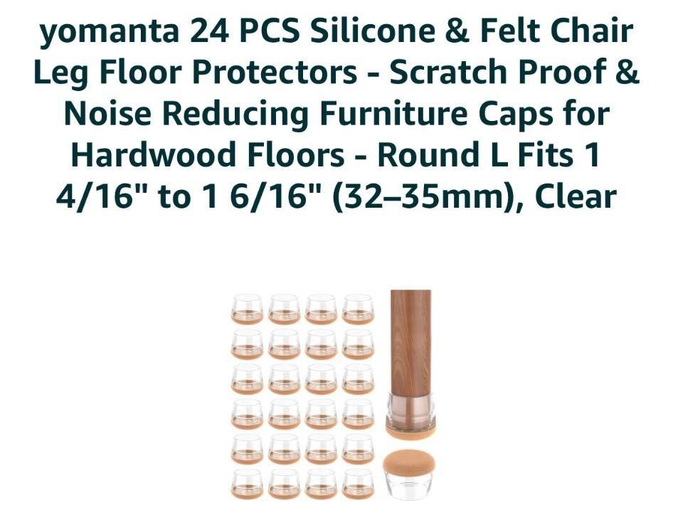 Lot 4179 Yomanta 24 Pcs Silicone and Felt Chair Leg Floor Protectors, Round, Large (32–35