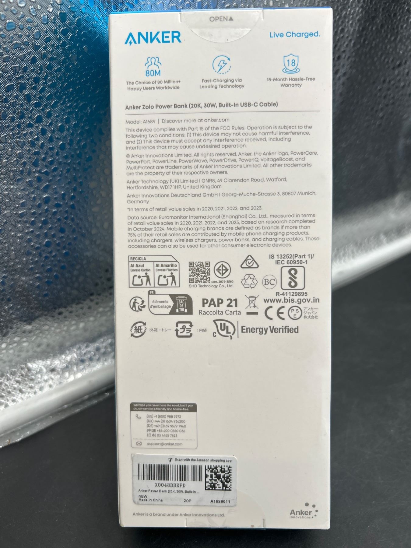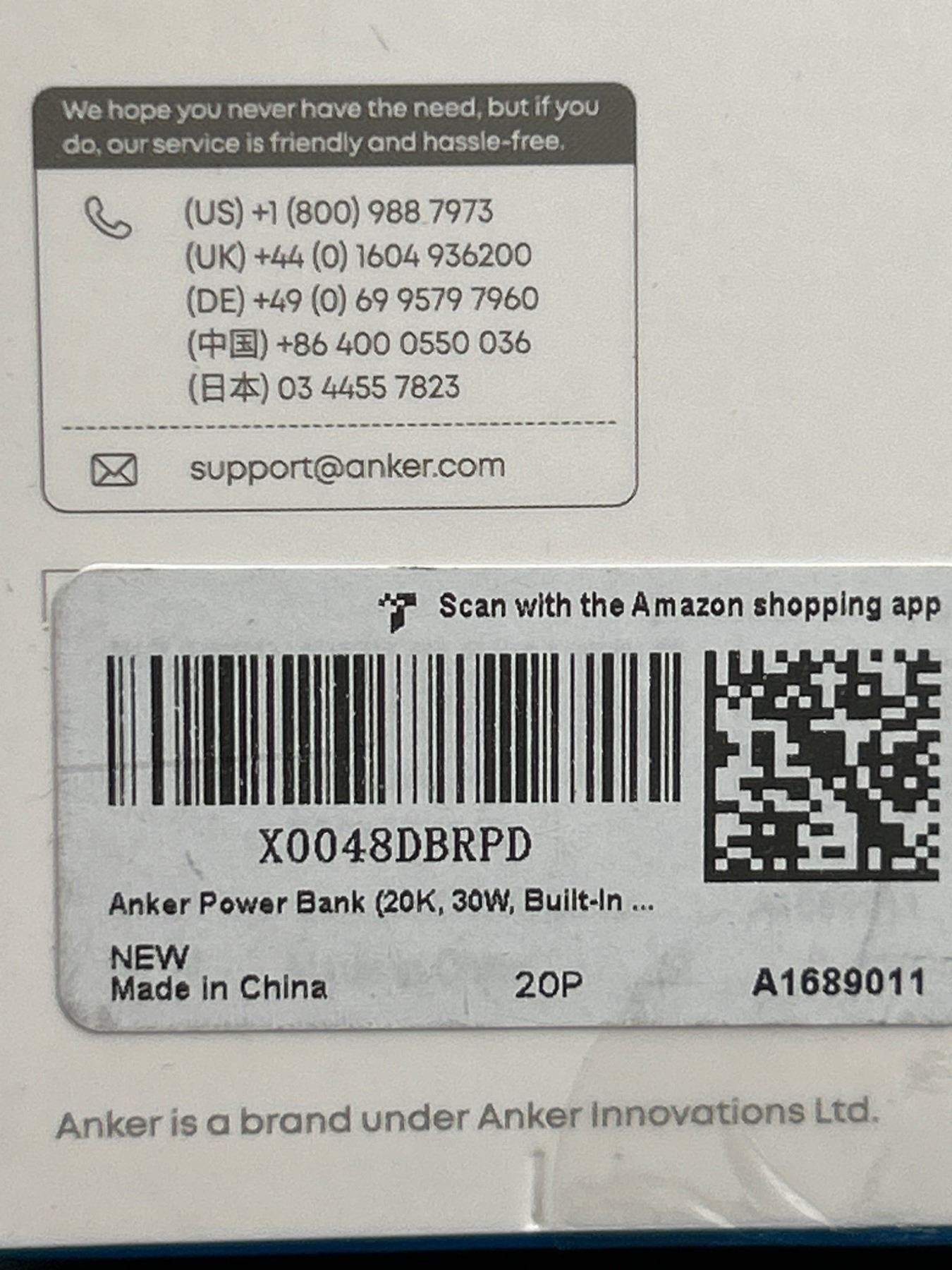 Lot 4216 Anker Power Bank 20,000mAh with Built-In USB-C Cable - Model A1689011