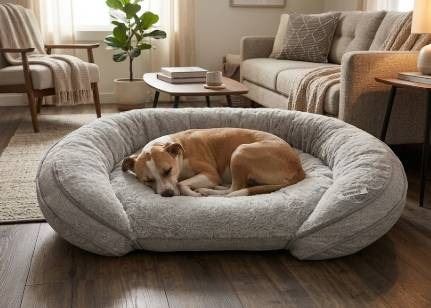 Gray Oval-Shaped Pet Bed With Plush Lining