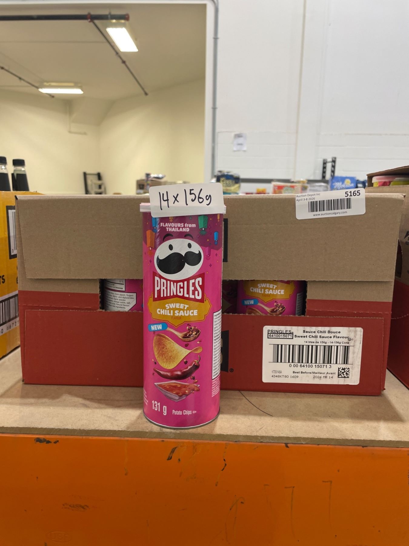 Lot 5165 Pringles Sweet Chili Sauce Chips, 14 Cans x 156g, 131g Net Weight Per Can