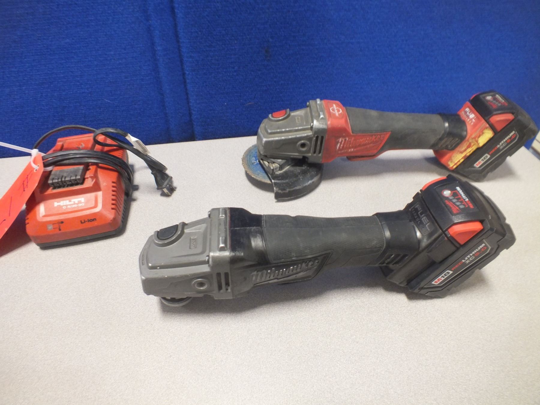 Two Milwaukee Grinders w/ 2 Batteries, also comes with a Hilti charger...RCMP theft recovery, sold as is/ Where Is...used