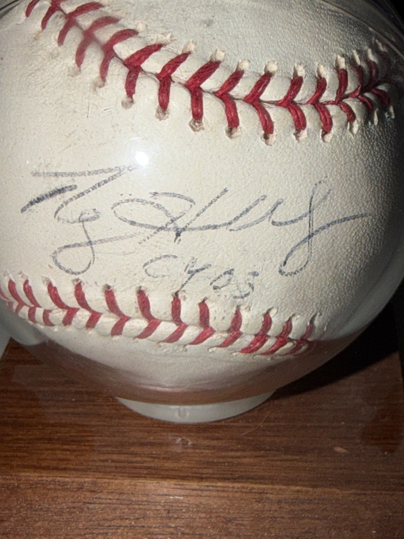 Lot 5 Rawlings Official MLB Ball w/ Roy Halliday Autograph, In Protective Shield on Stand w/ Authenticity