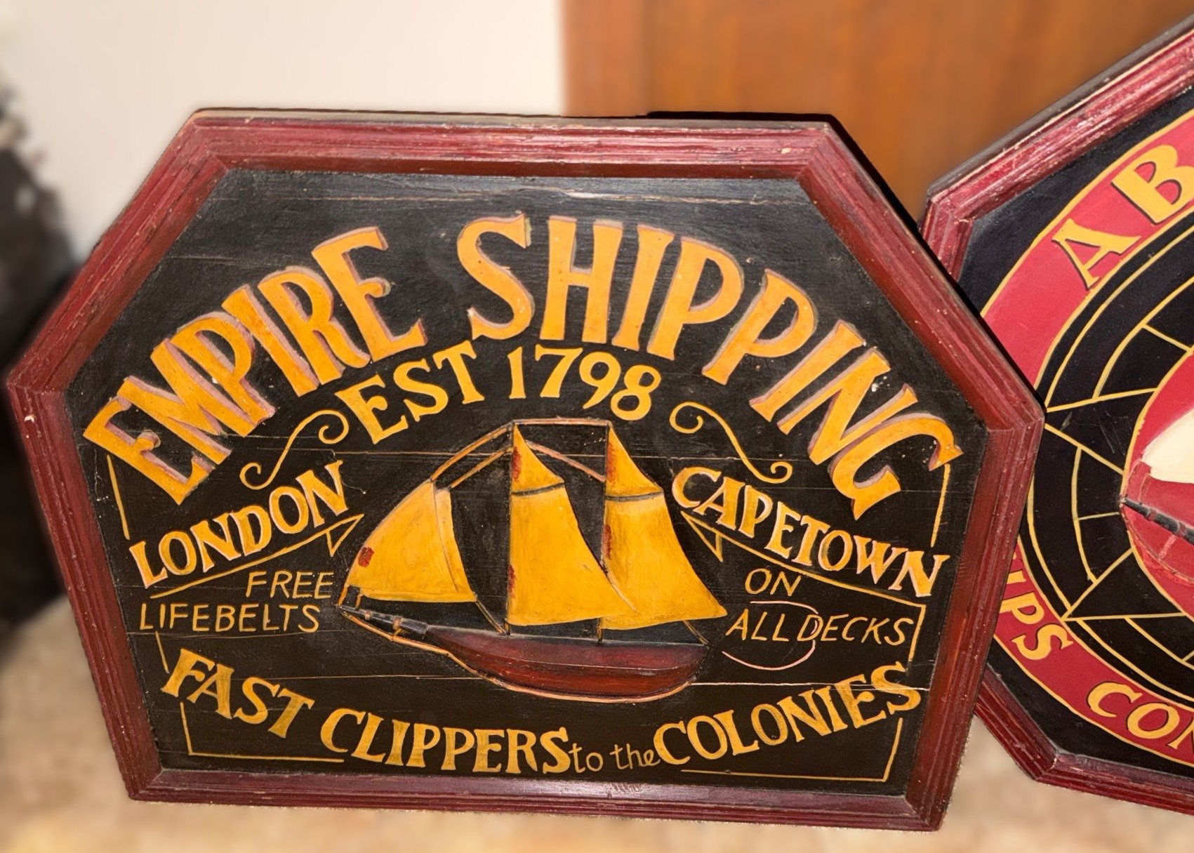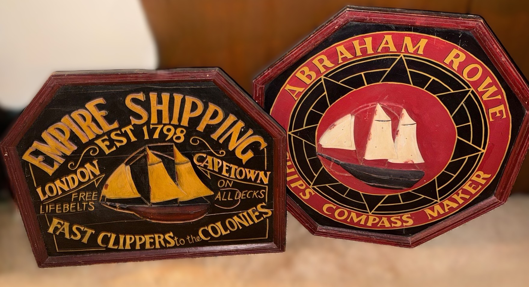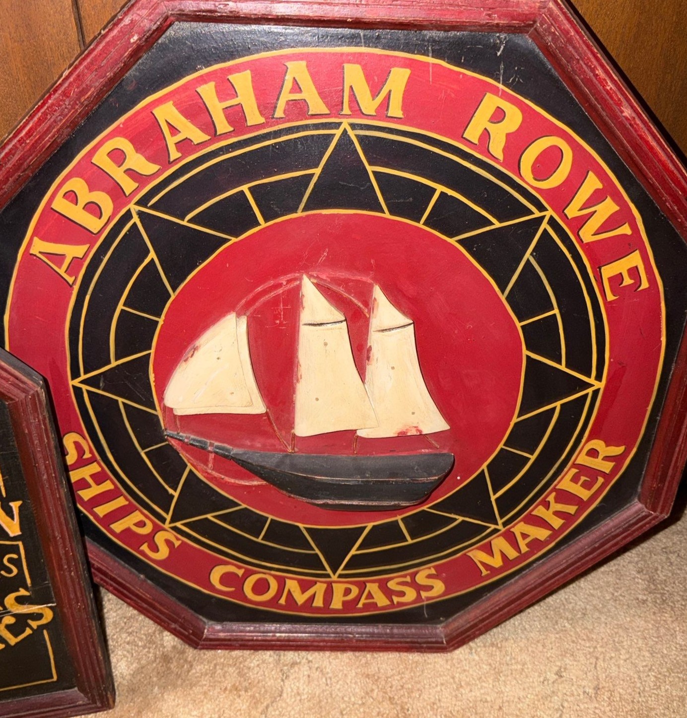 Lot 7 Abraham Rowe Ships Compass Maker 24 X 24 and Empire Shipping 23.5 X 20 Decorative Signs