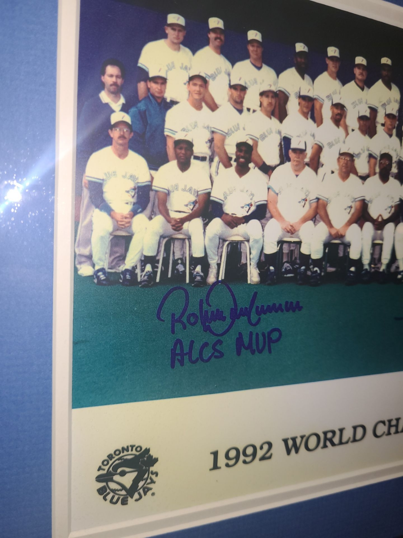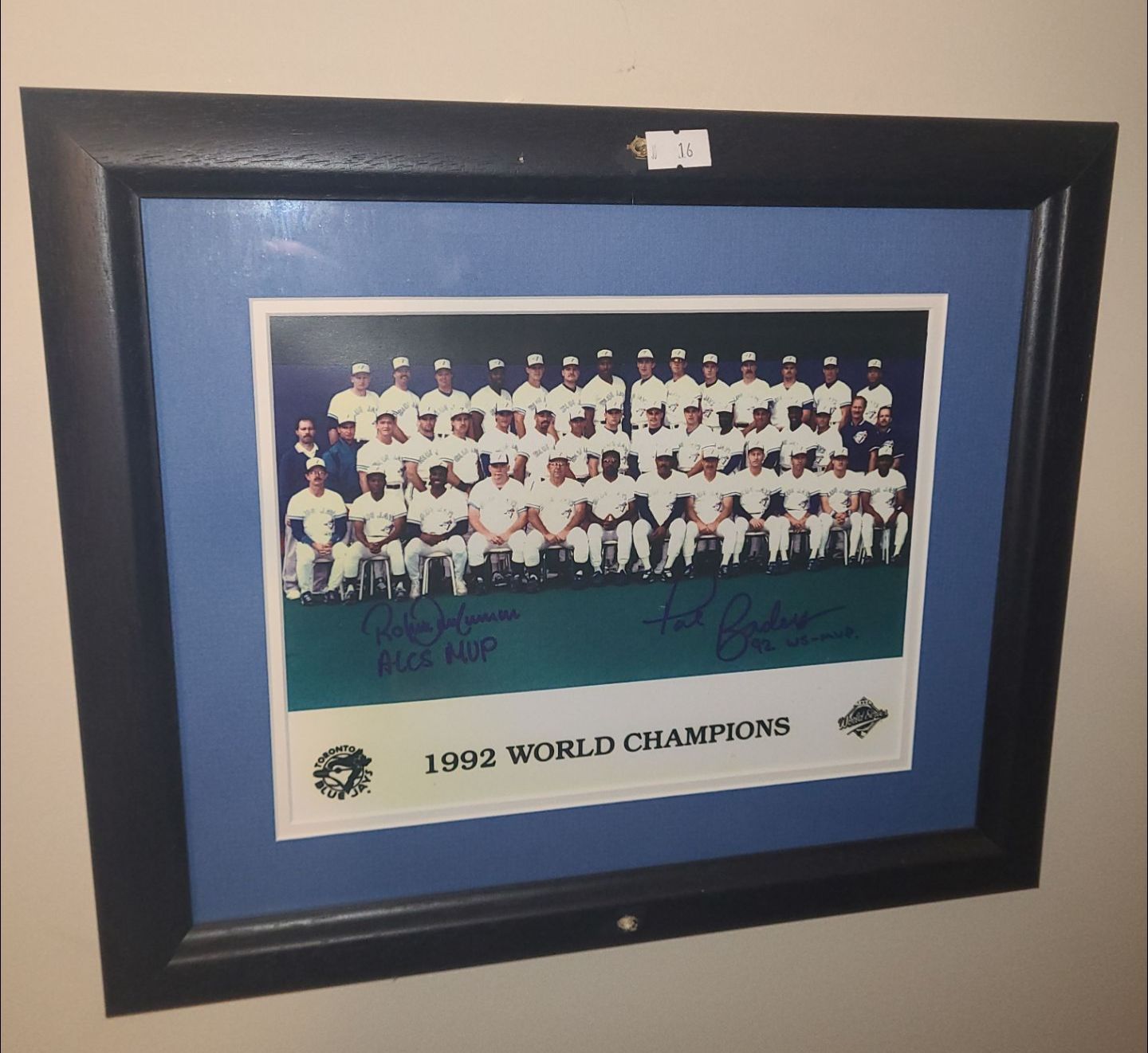 Lot 16 Blue Jays 1992 World Champions Photo w/2 Autographs, Incl: Pat Borders, 14.5 X 12 Framed Under Glass