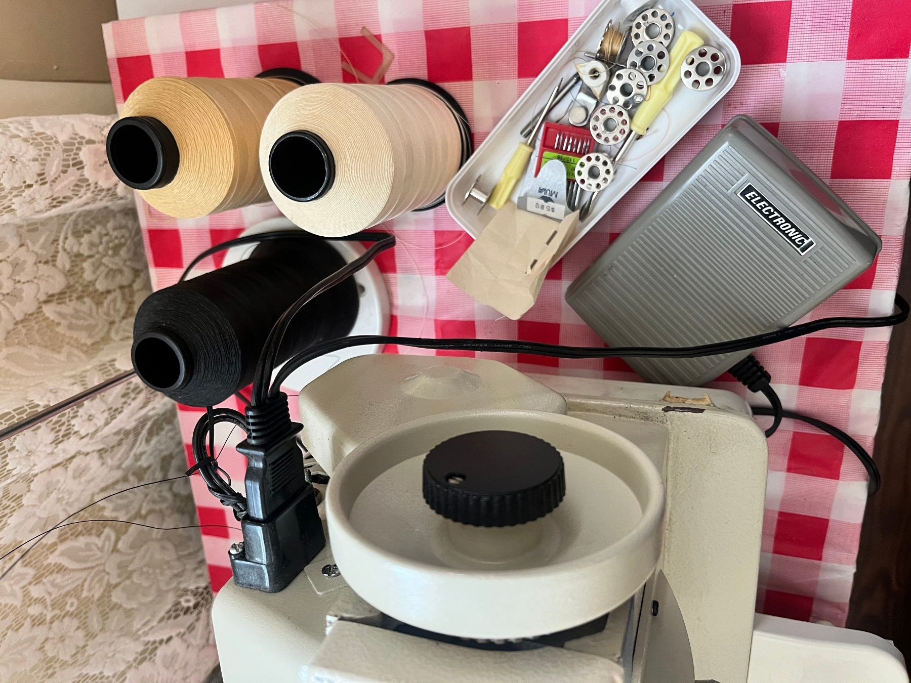 Lot 14 Deluxe, super zigzag, Titan, sewing machine with extra thread spindles, thread holder, in great work