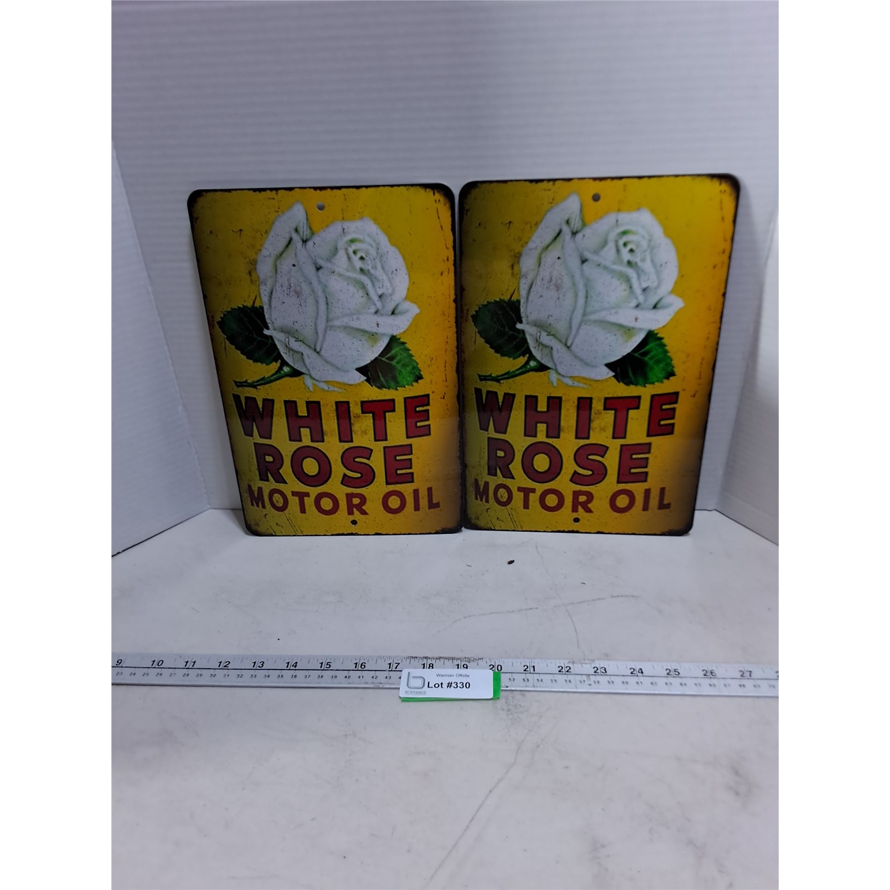 Lot 330 (2) Metal "White Rose Motor Oil" Wall Decor