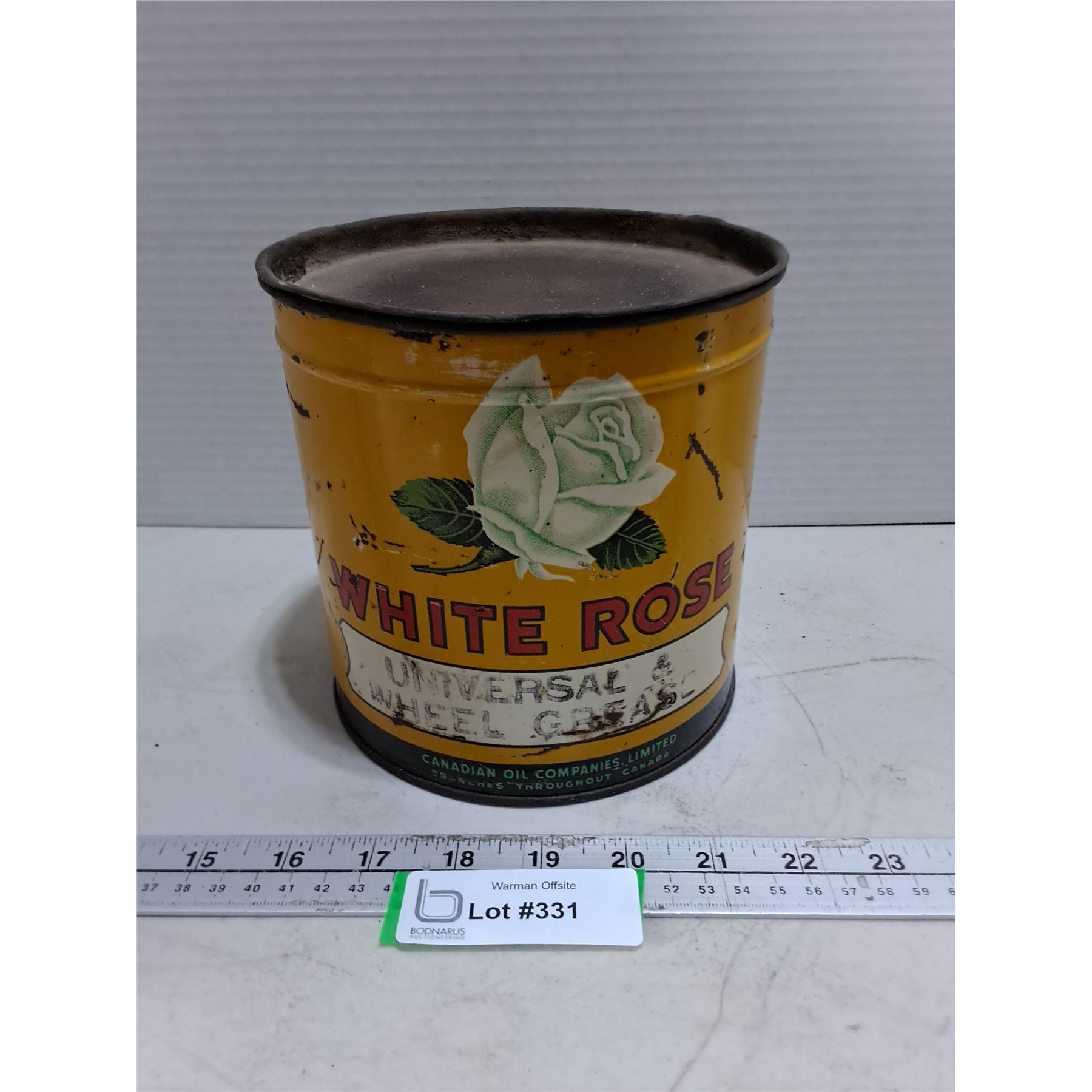 Lot 331 Vintage "White Rose Wheel Grease" Tin