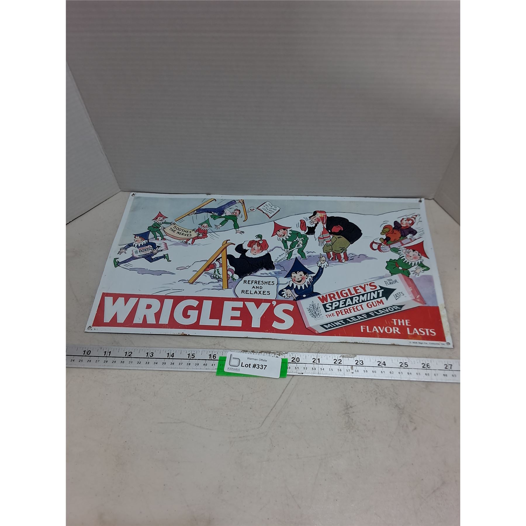 Lot 337 Vintage Metal 18" x 10" "Wrigley's Spearmint Gum" Wall Sign