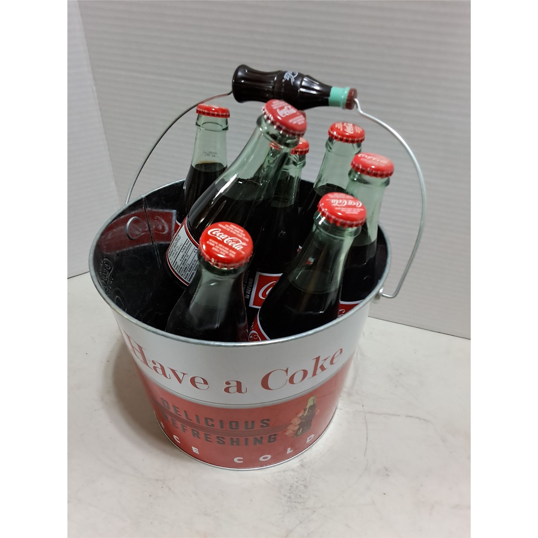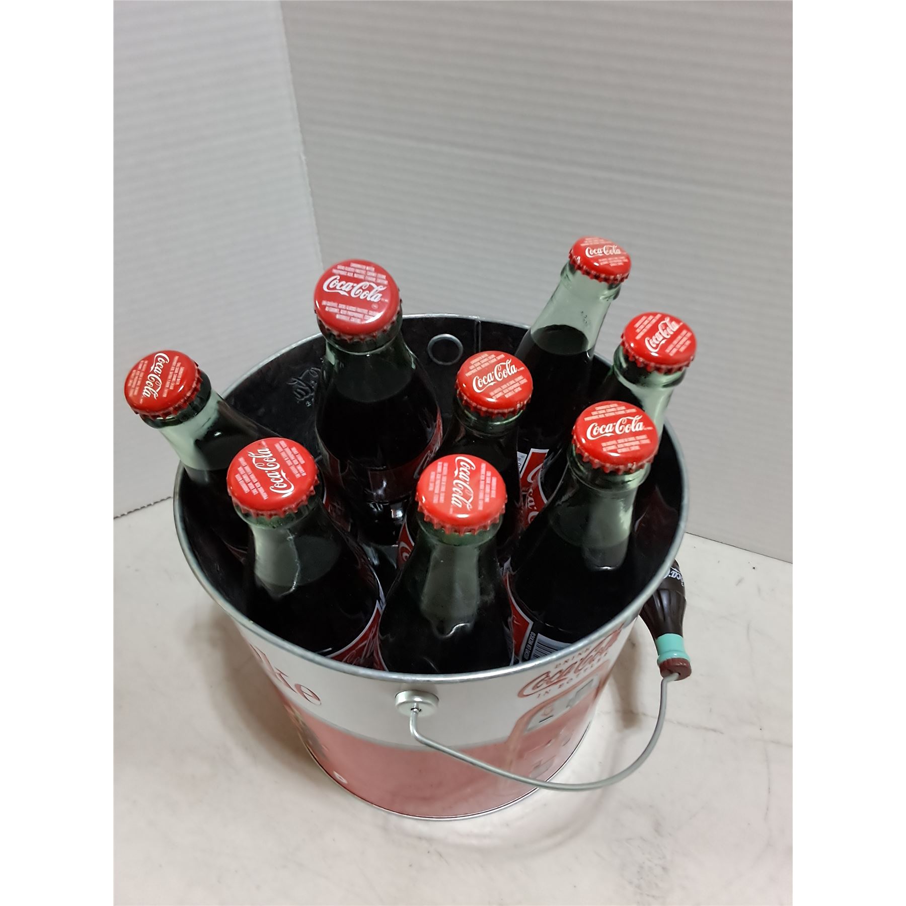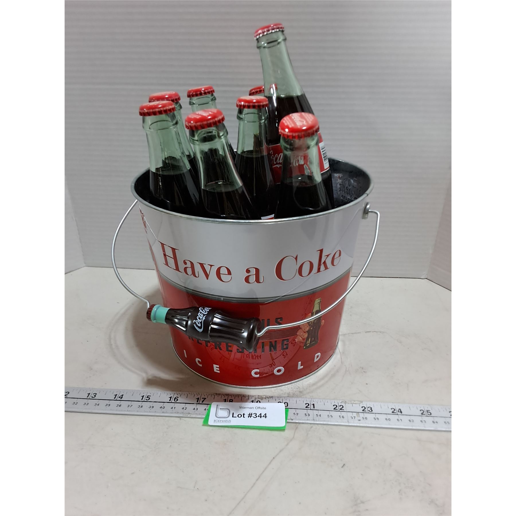 Lot 344 Metal Coca-Cola Ice Bucket w/8 355ml Full Coke Bottles - PICK UP ONLY