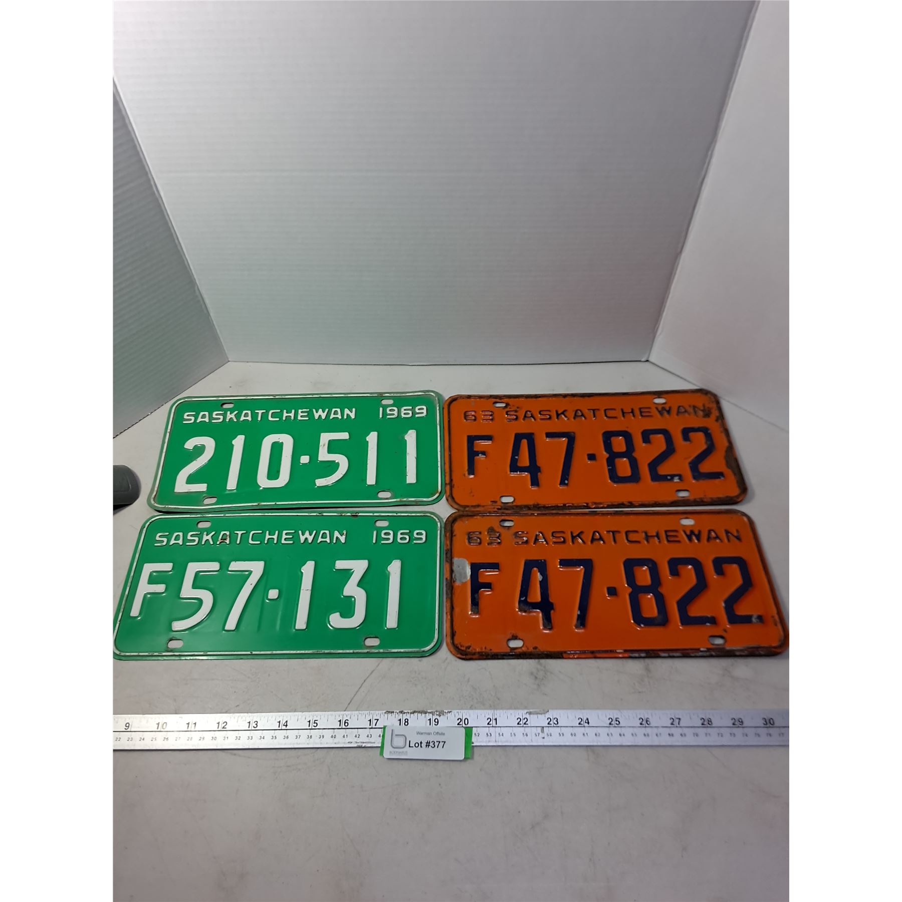 Lot 377 (2) Pairs of 1960's Saskatchewan License Plates