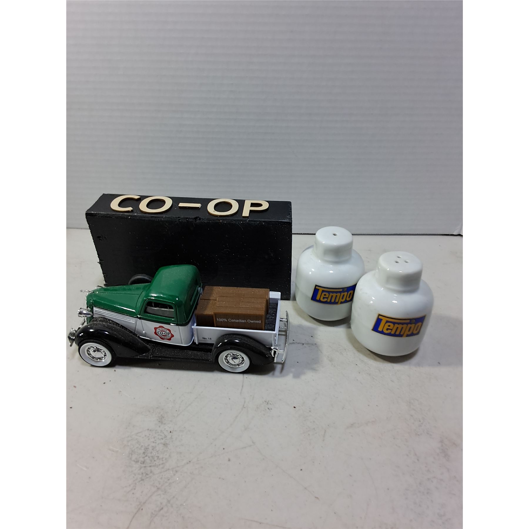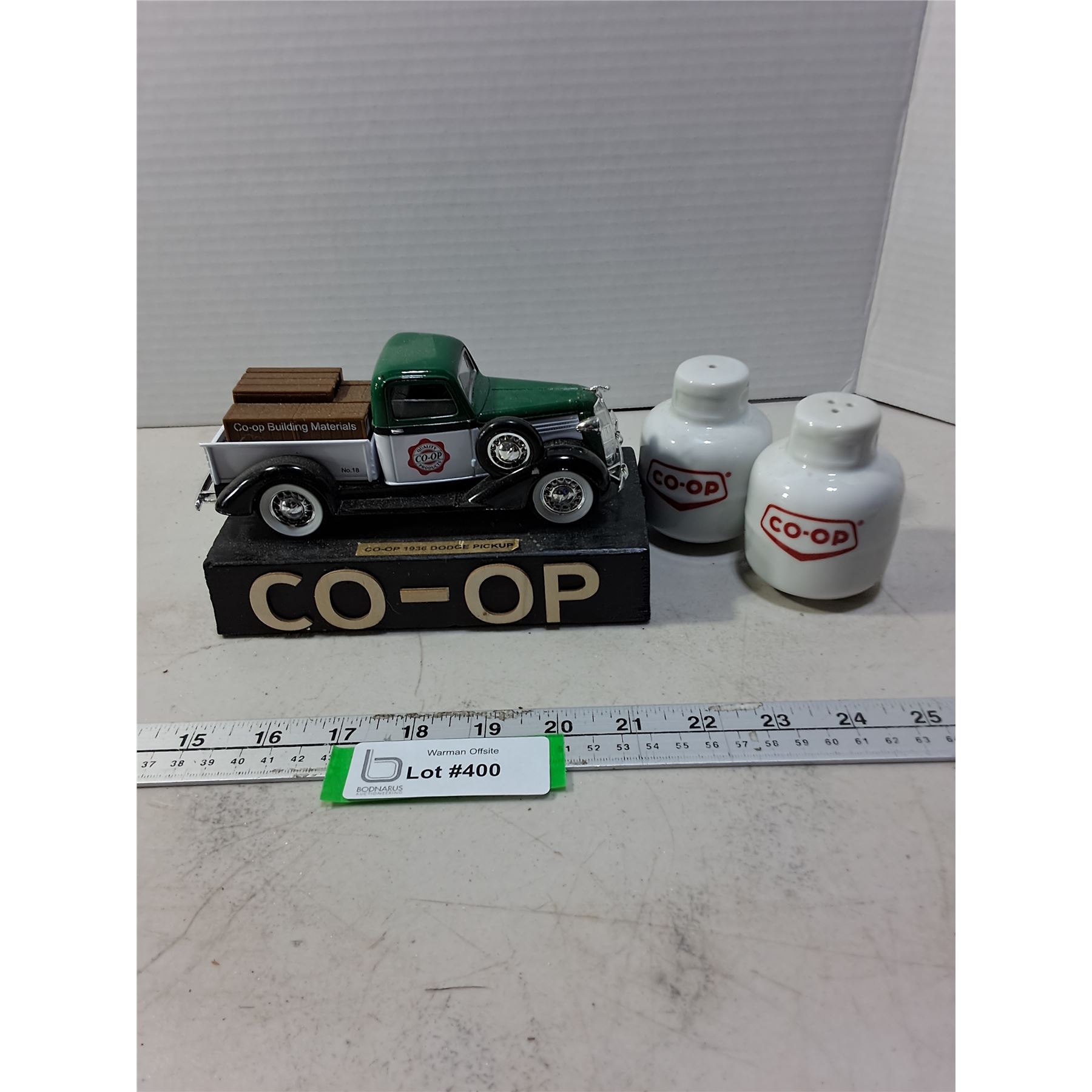 Lot 400 Co-op Memorabilia (Propane Tank Shakers, Replica Die-Cast 1936 Dodge Pickup w/Platform)