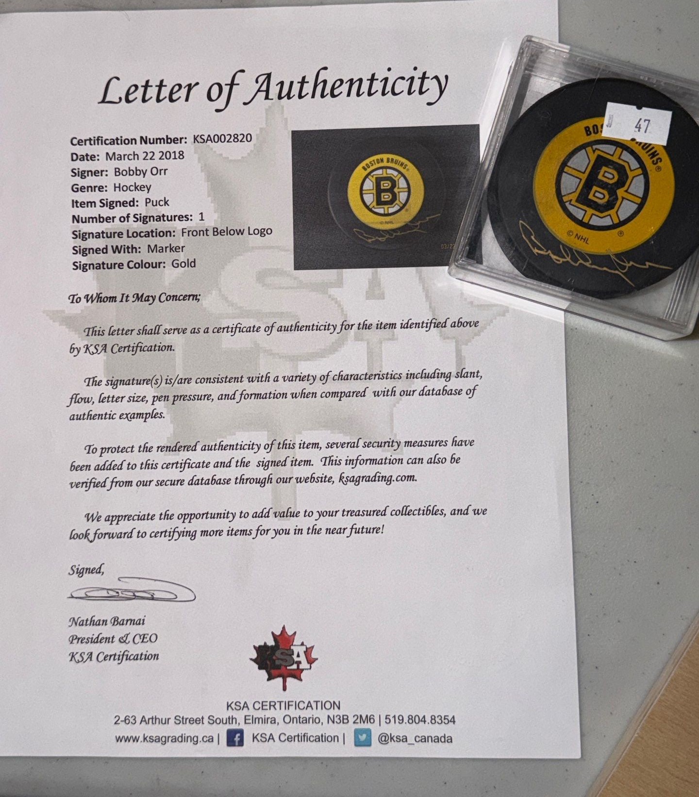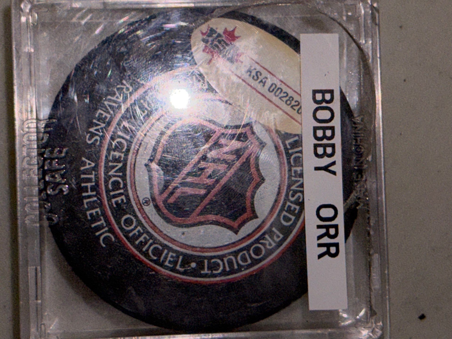 Lot 47 Boston Bruins Hockey Puck w/ Bobby Orr Autograph in Clear Case w/ Authenticy