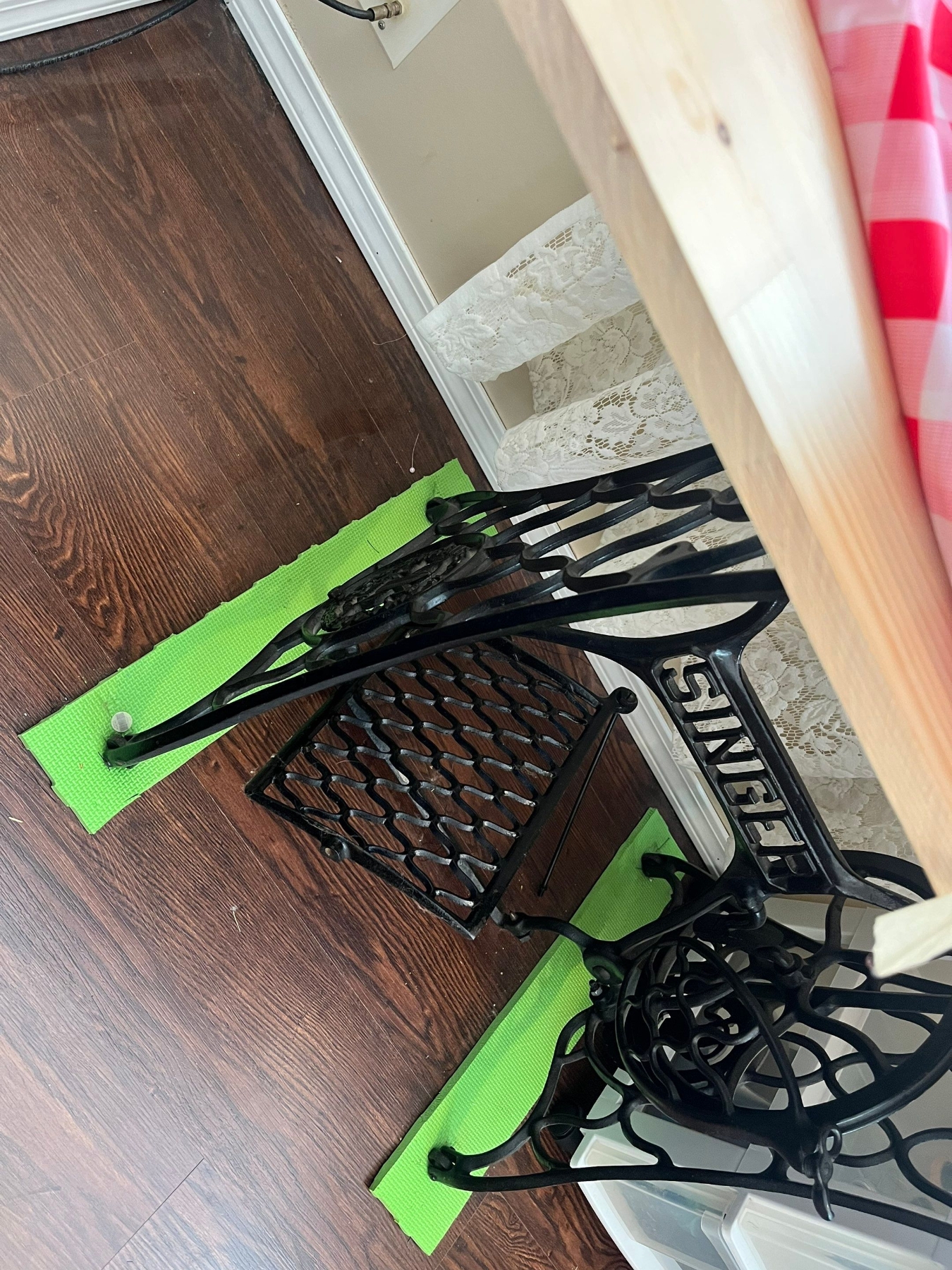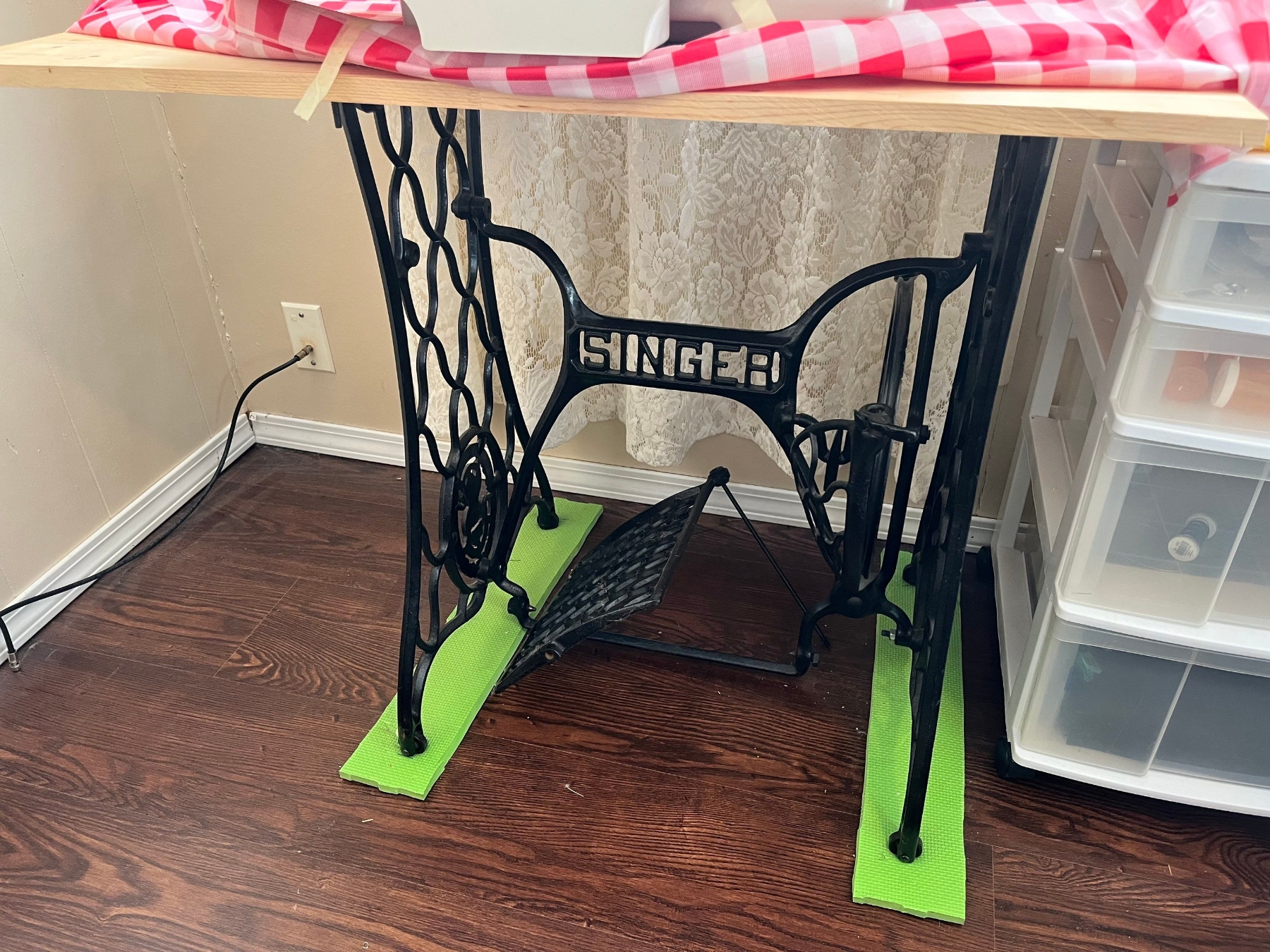 Lot 37 Singer sewing machine stand. New wooden top has been attached.