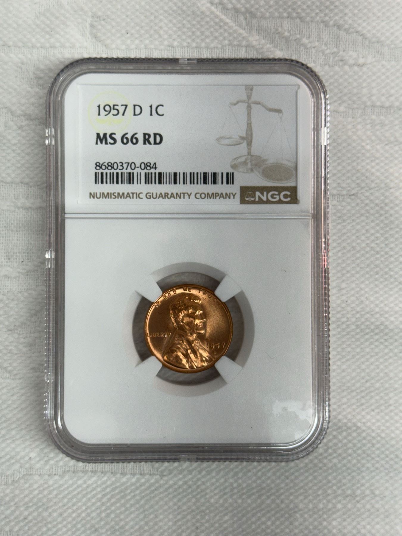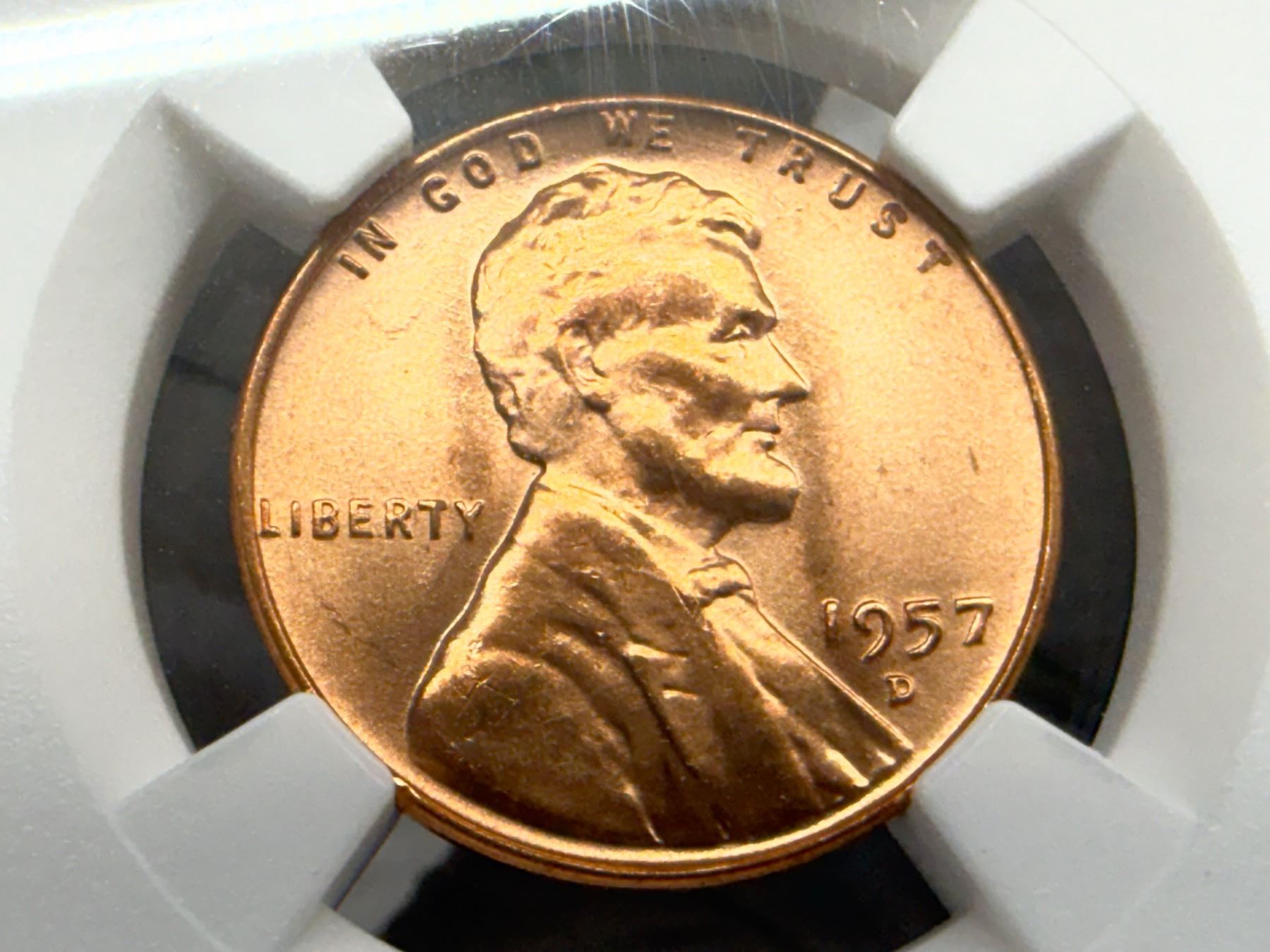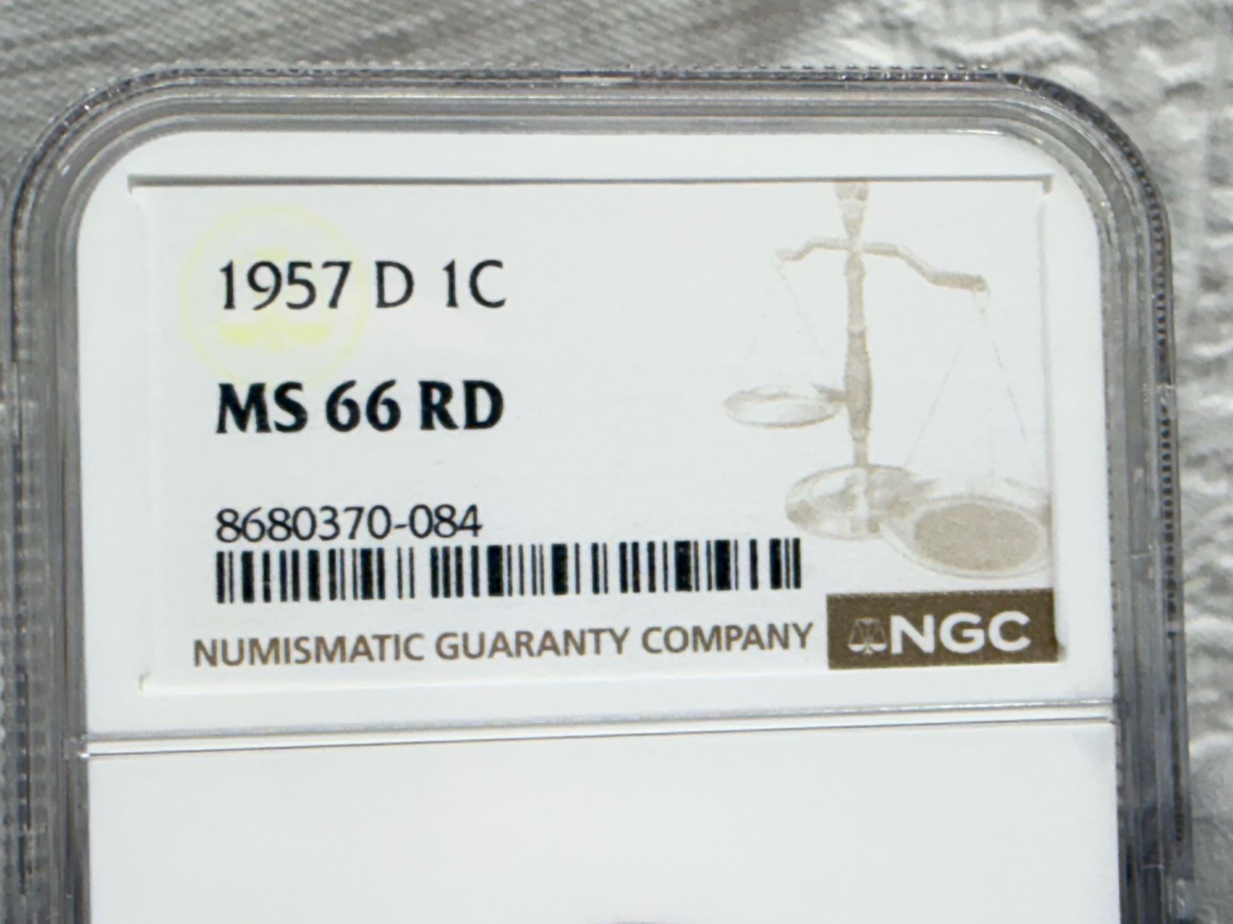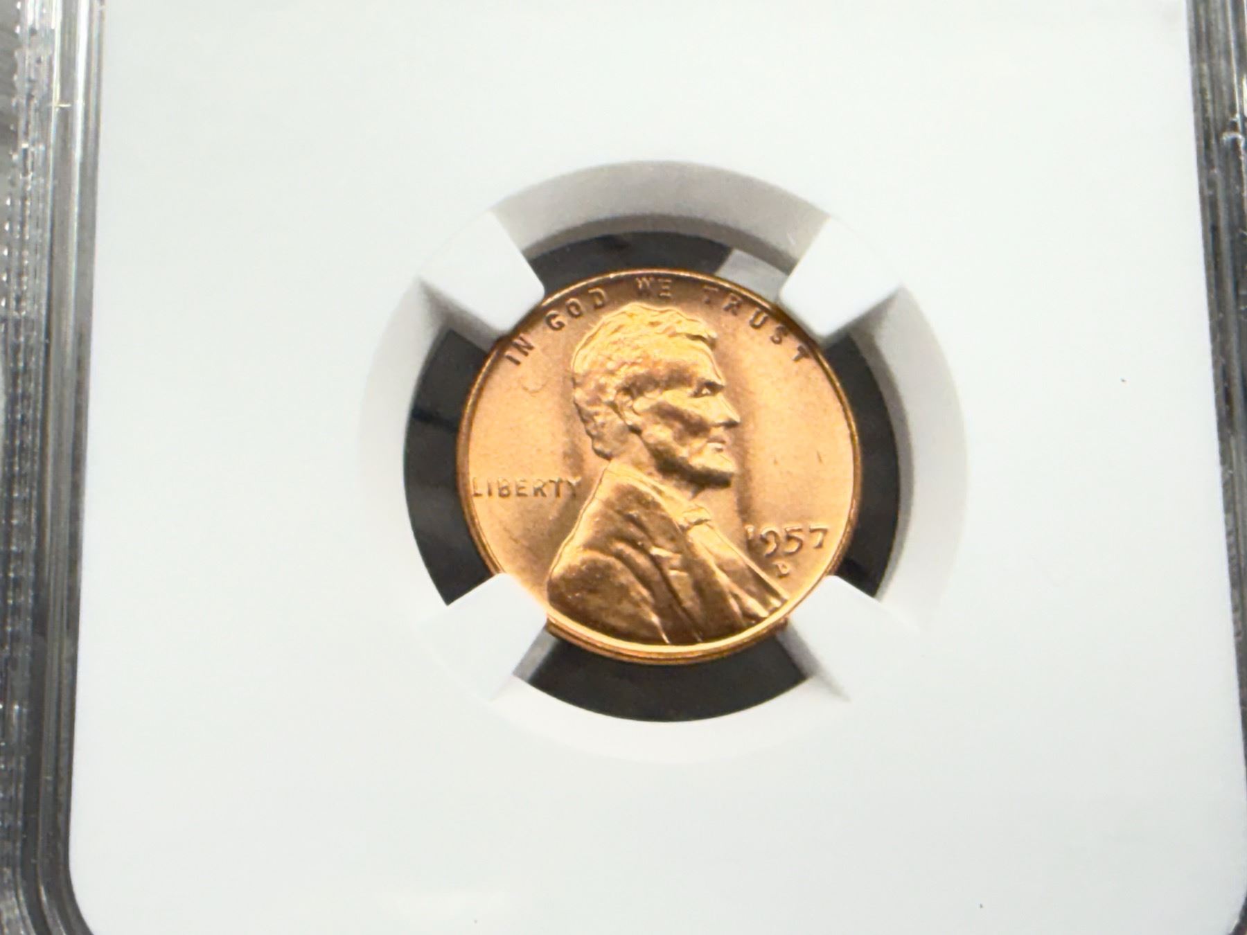Lot 38 LINCOLN WHEAT PENNY - 1957D - MS66 RD (RED)