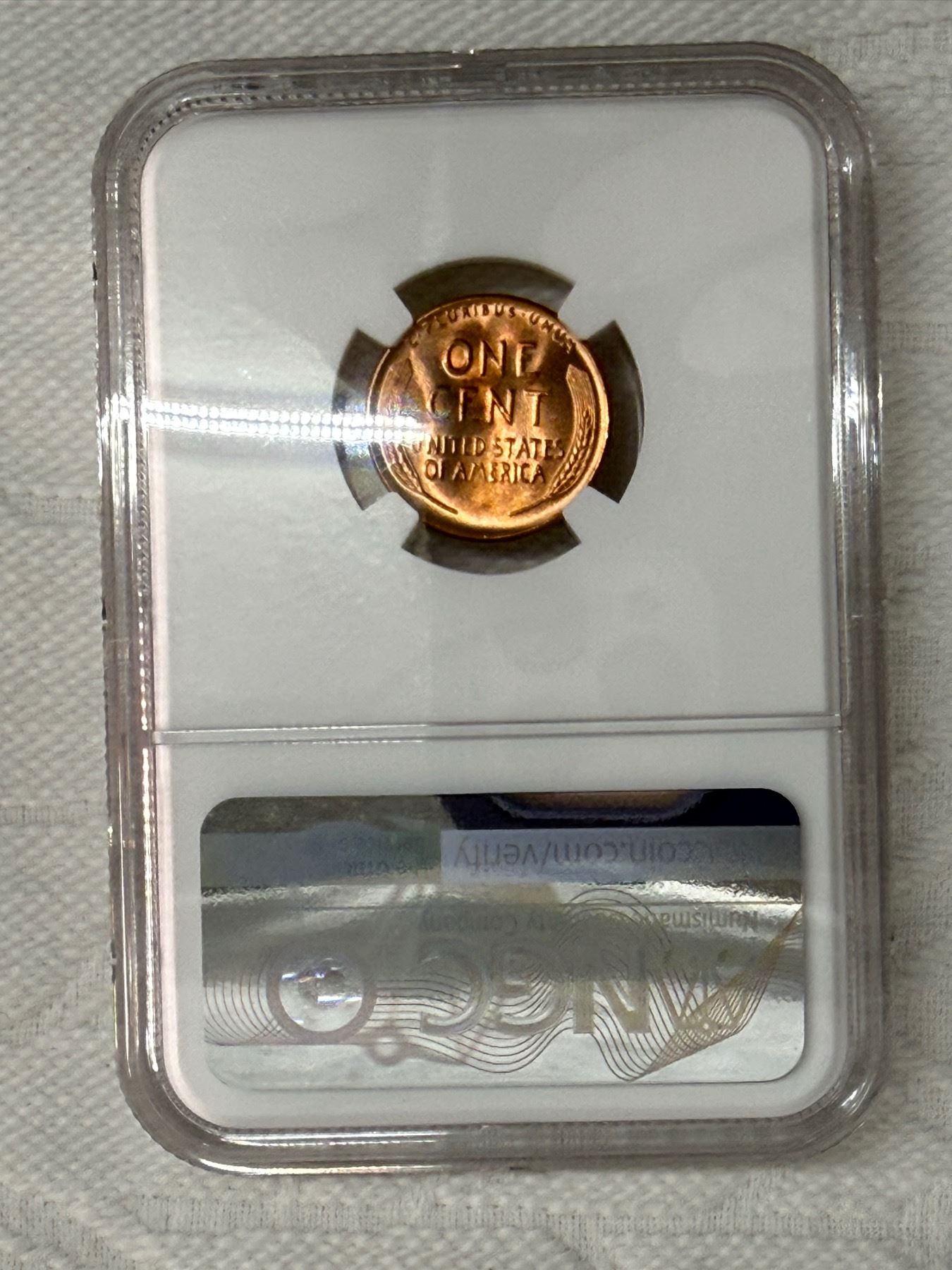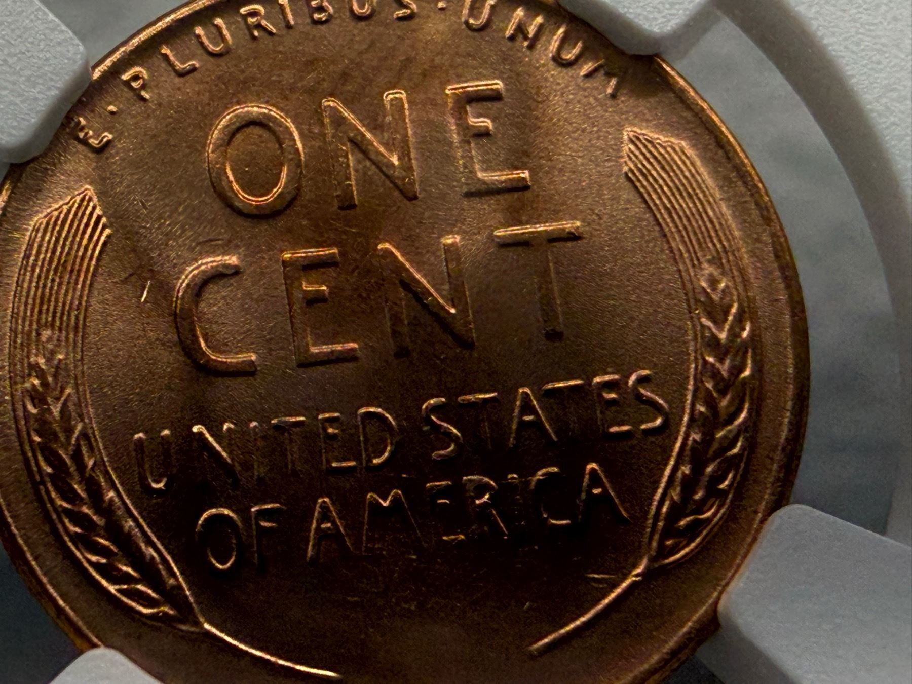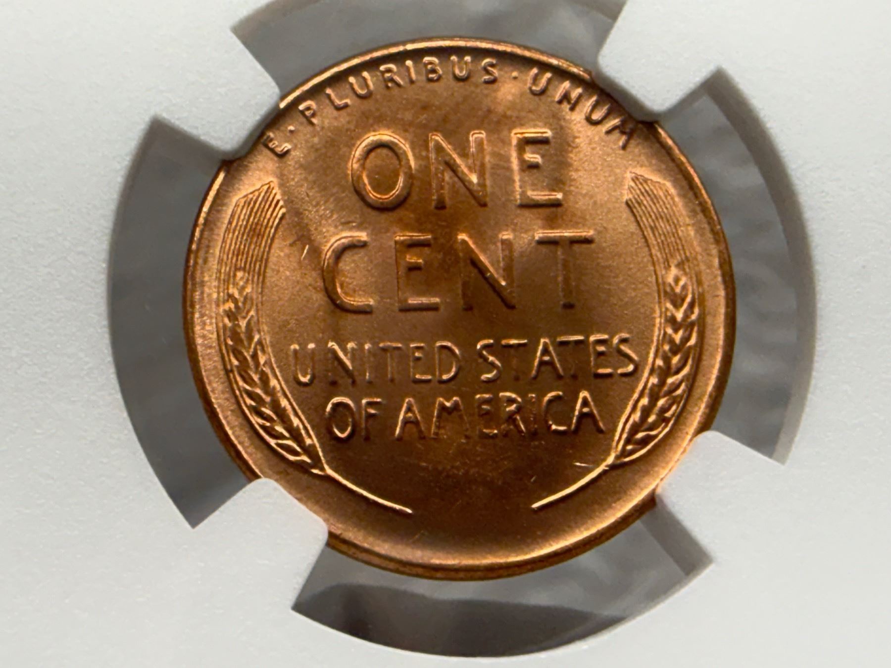 THIS PENNY IS "GEM UNCIRCULATED" COIN WITH STRONG LUSTER AND MINIMAL IMPERFECTIONS AND HAS RETAINED AT LEAST 95% OF ITS ORIGINAL RED COLOR; LINCOLN "WHEAT" CENTS WERE MINTED FROM 1909-1958