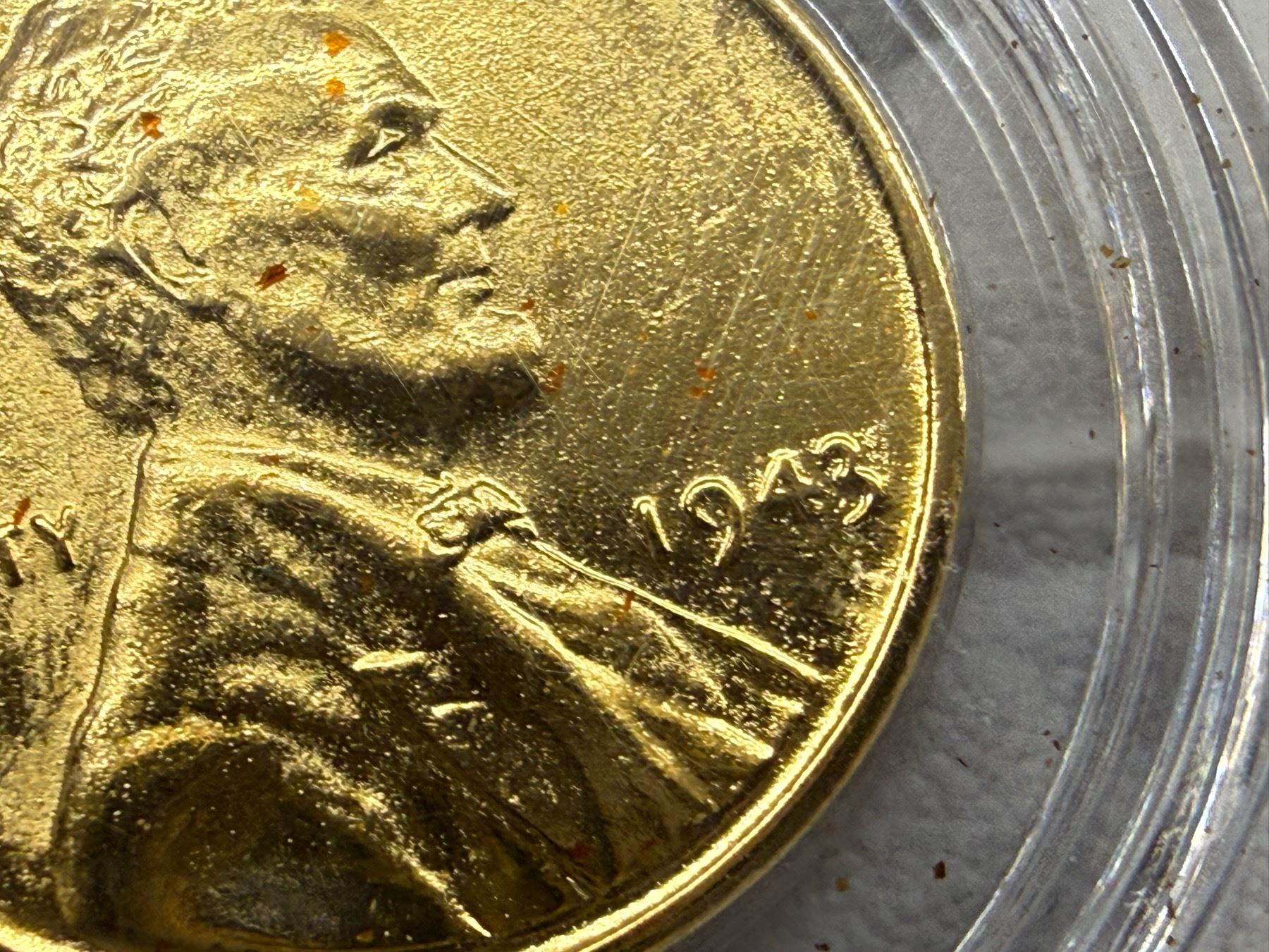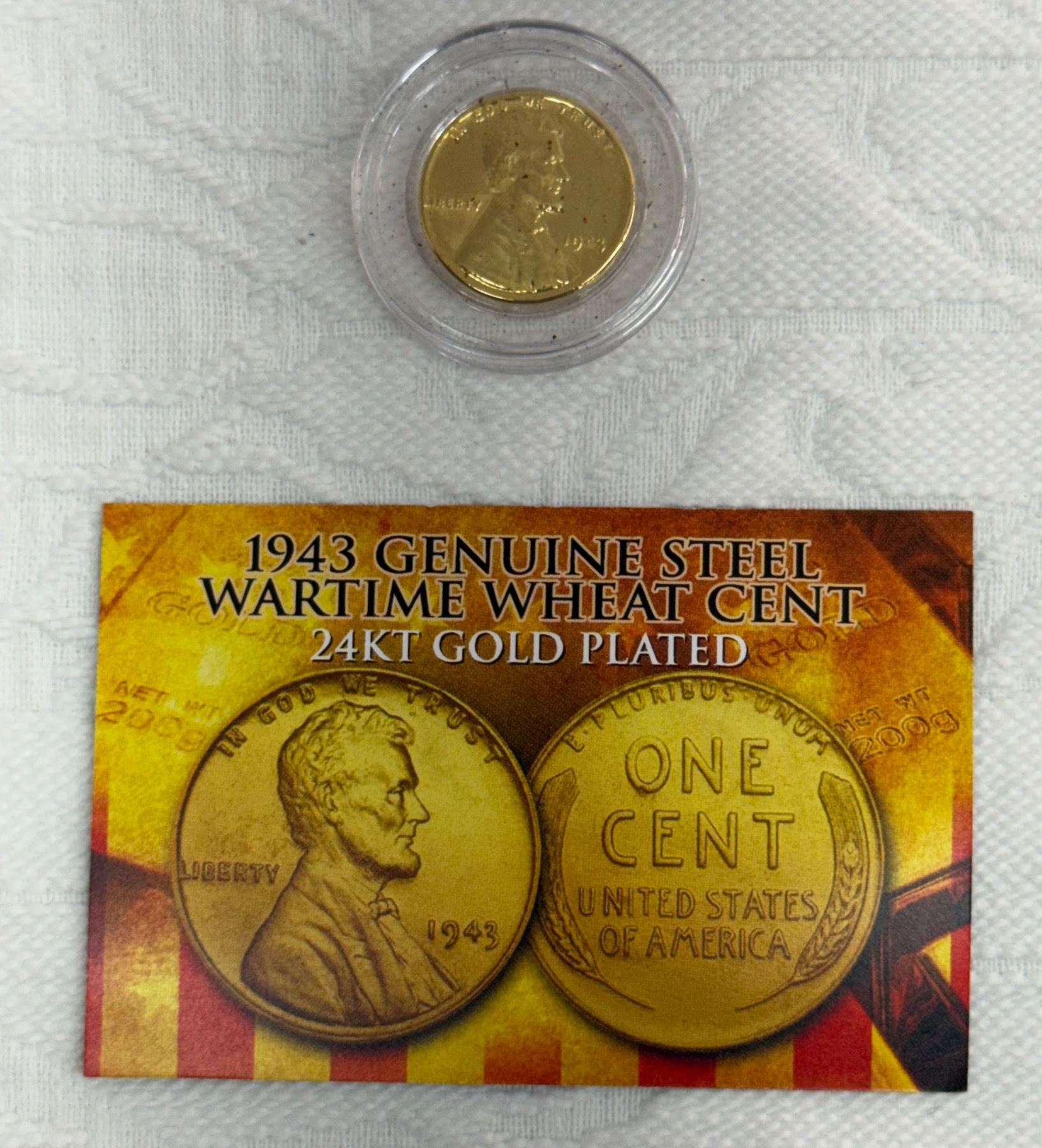 LINCOLN WHEAT PENN, PLATED IN 24-KARAT GOLD - 1943; PHILADELPHIA MINT