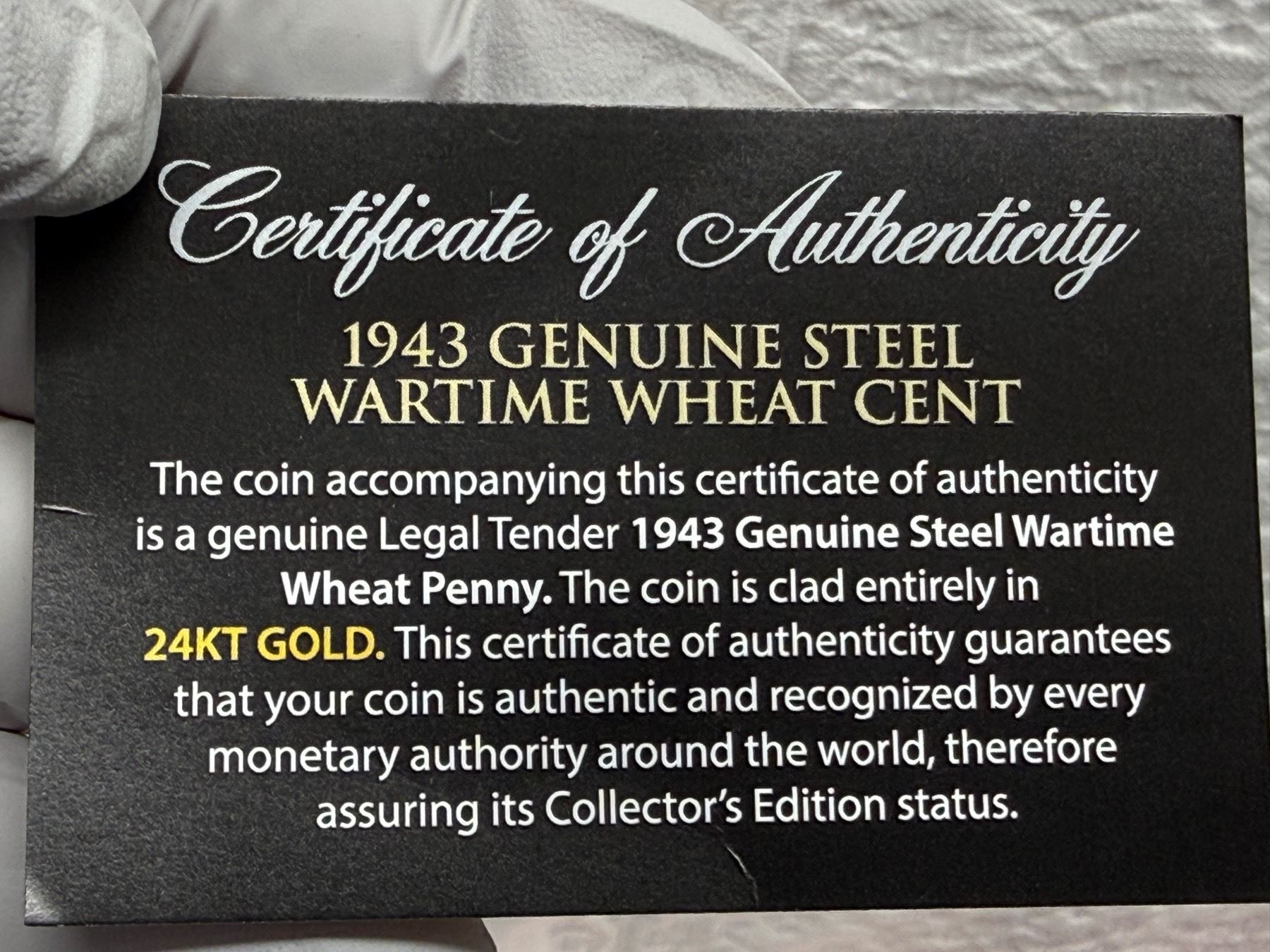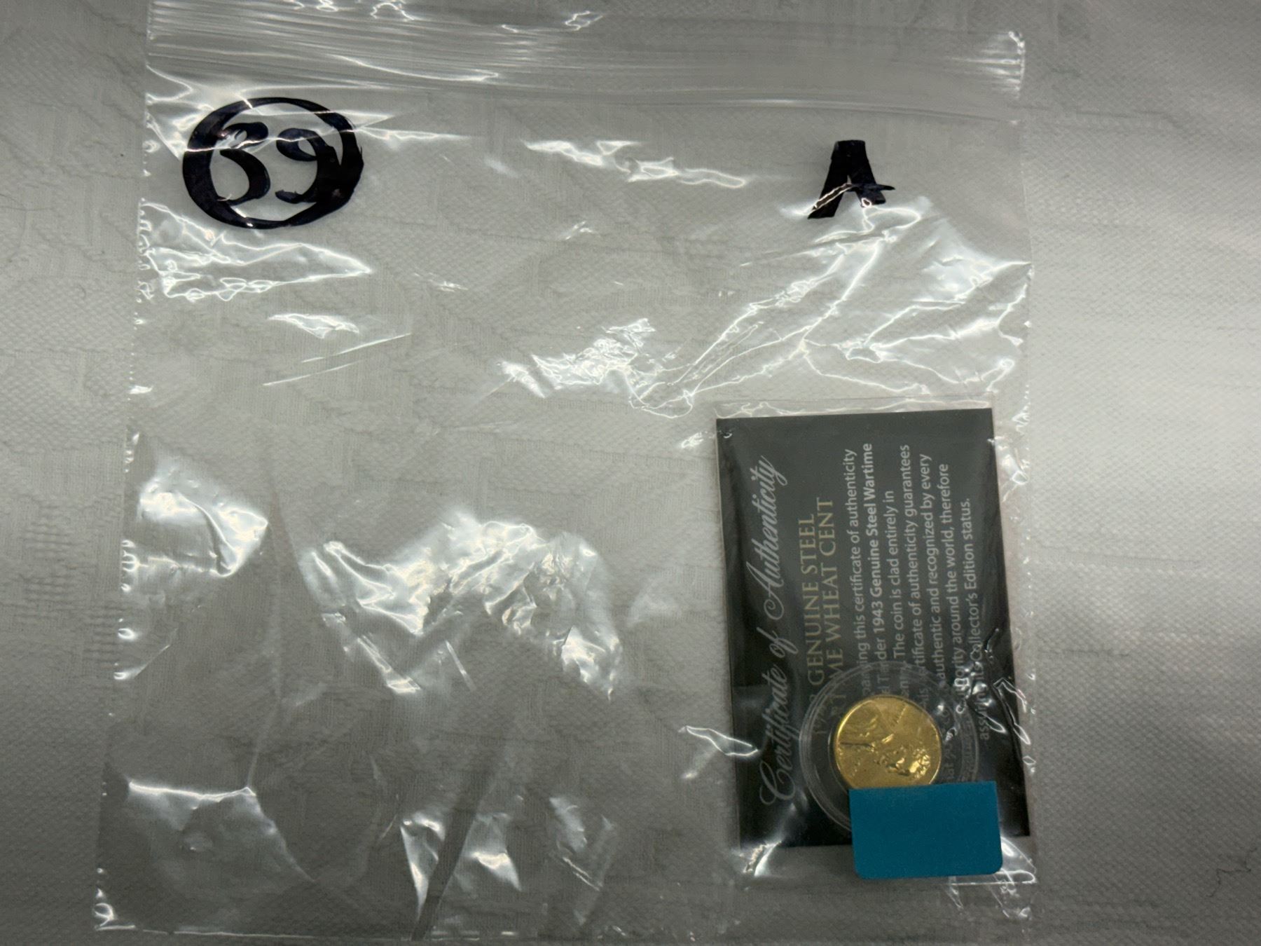 Lot 39 LINCOLN WHEAT PENN, PLATED IN 24-KARAT GOLD - 1943