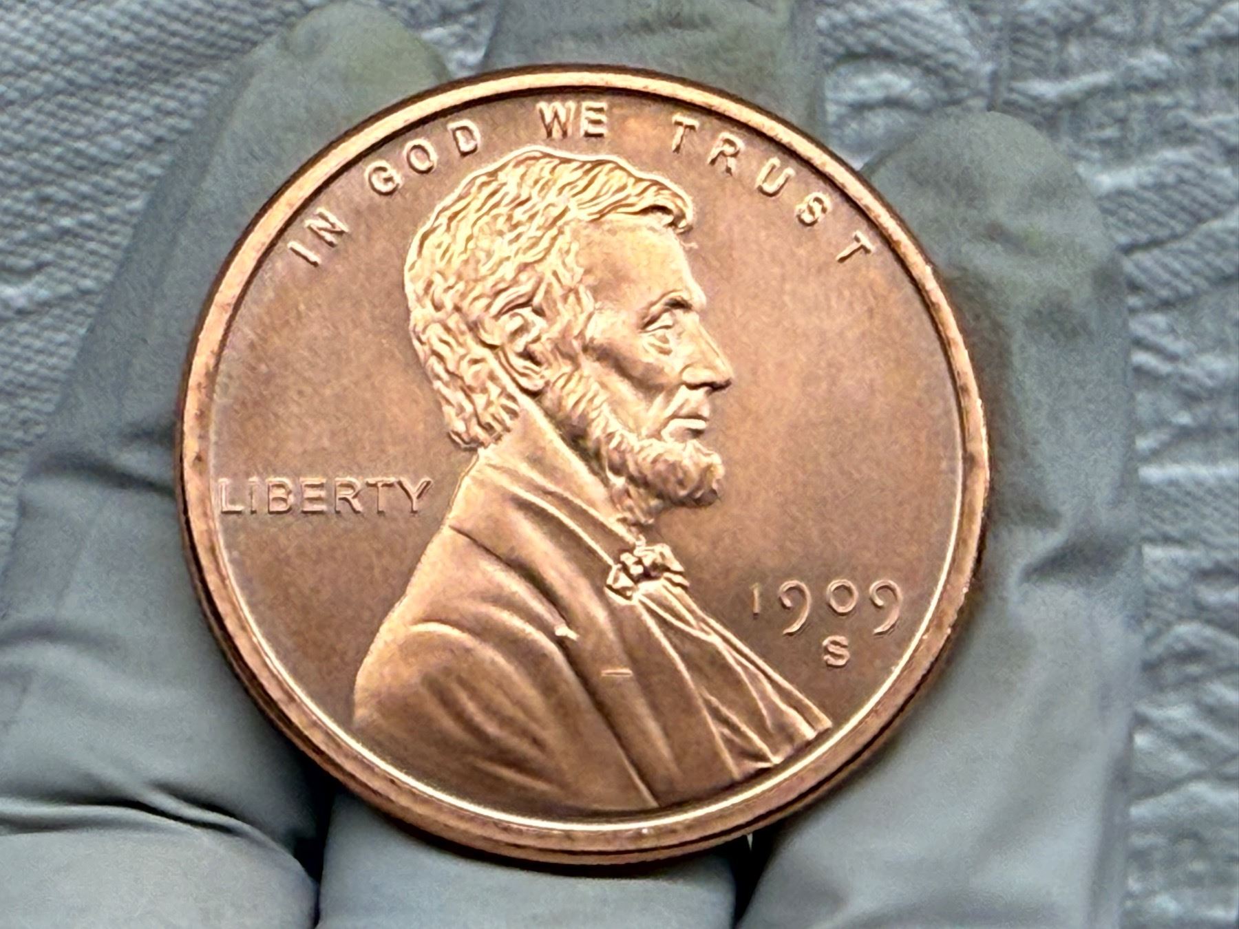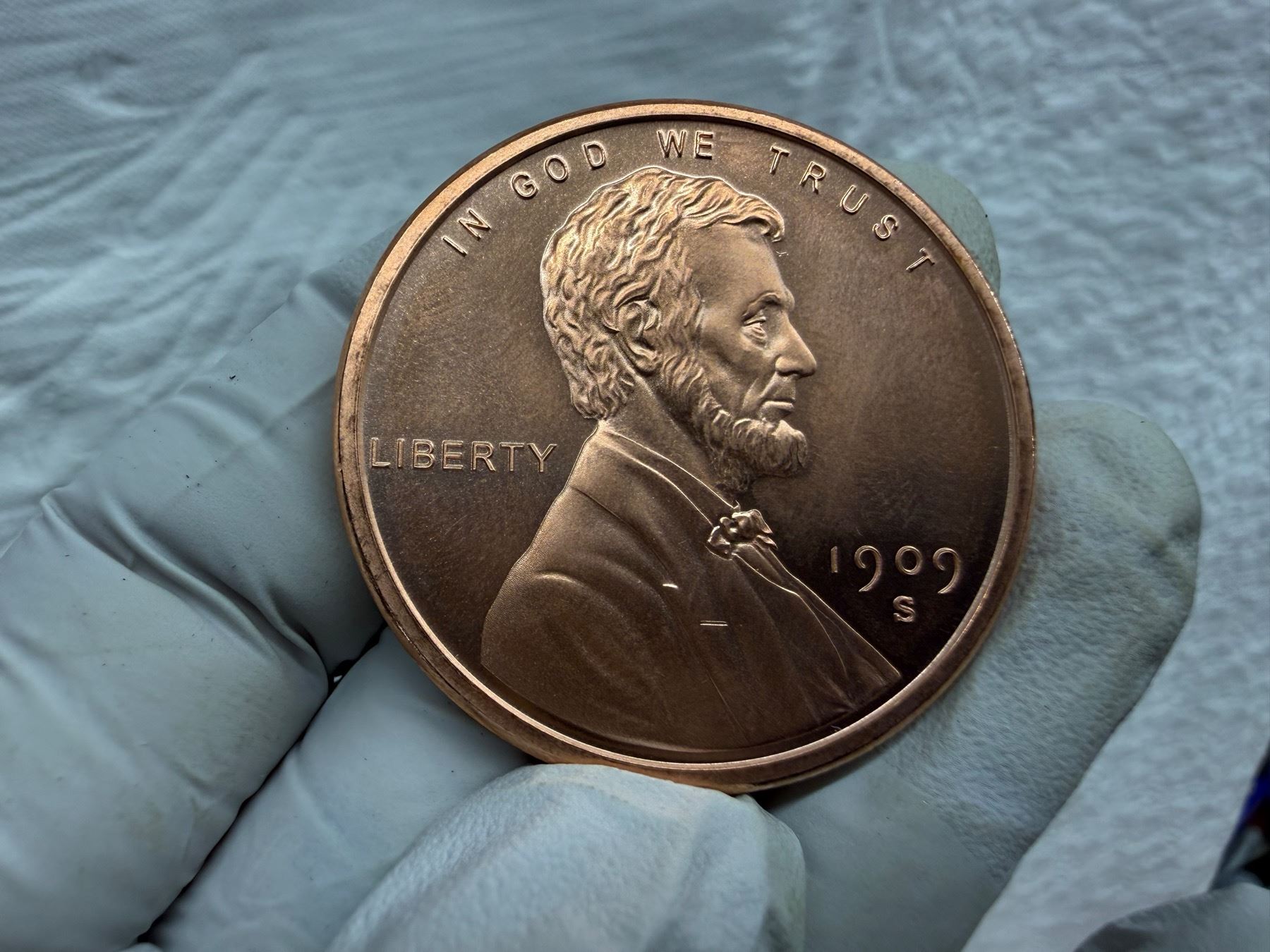 THIS BRILLIANT ROUND DISPLAYS THE SIDE PROFILE OF THE OUR 16TH US PRESIDENT, ABRAHAM LINCOLN. THE DESIGNER OF THIS HISTORIC PIECE WAS VICTOR D. BRENNER, AND HIS INITIALS V.D.B. MAY BE FOUND ON THE REVERSE BETWEEN THE TWO WHEAT STALKS. IT WAS ISSUED IN A LIMITED QUANTITY TO COMMEMORATE THE 100TH ANNIVERSARY OF ABRAHAM LINCOLN'S BIRTH.