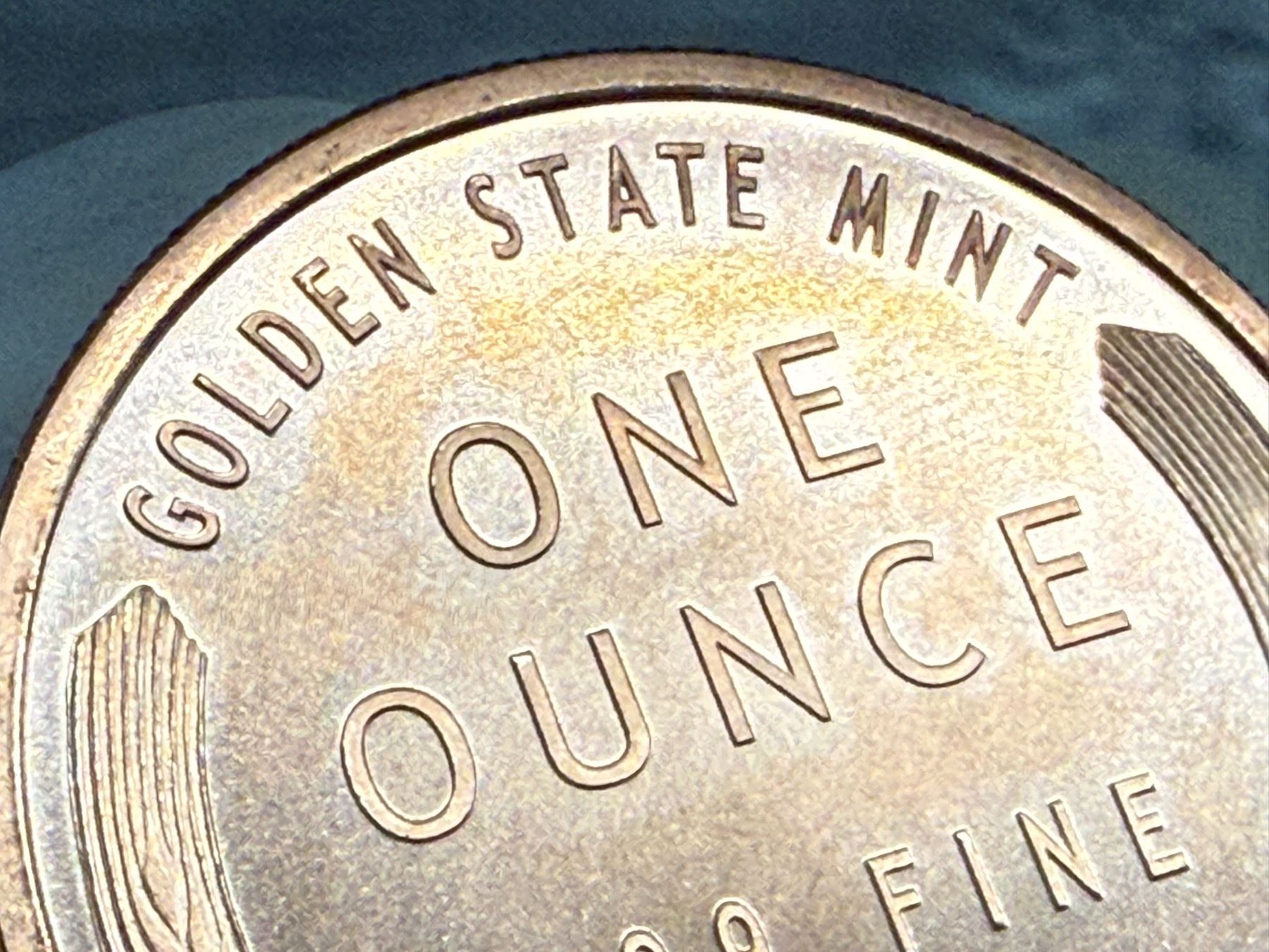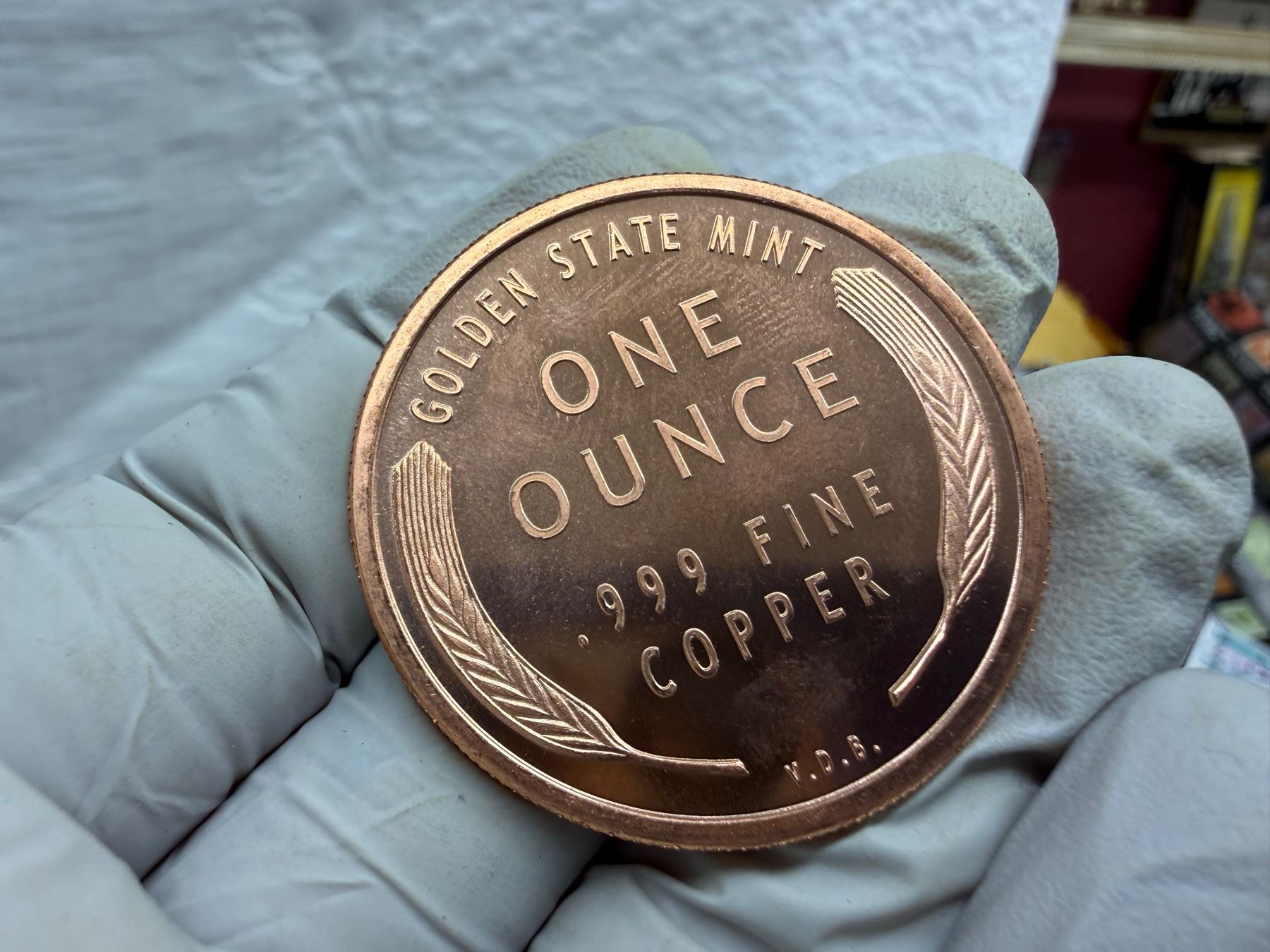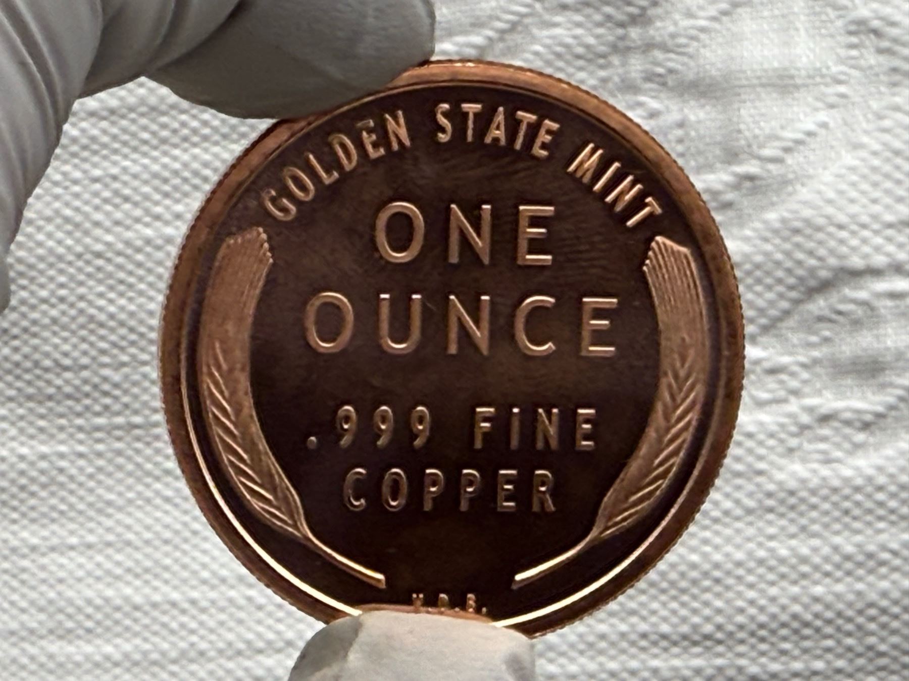 LINCOLN V.D.B. WHEAT PENNY COPPER BULLION ROUND - 1 OUNCE .999 FINE COPPER ; GOLDEN STATE MINT