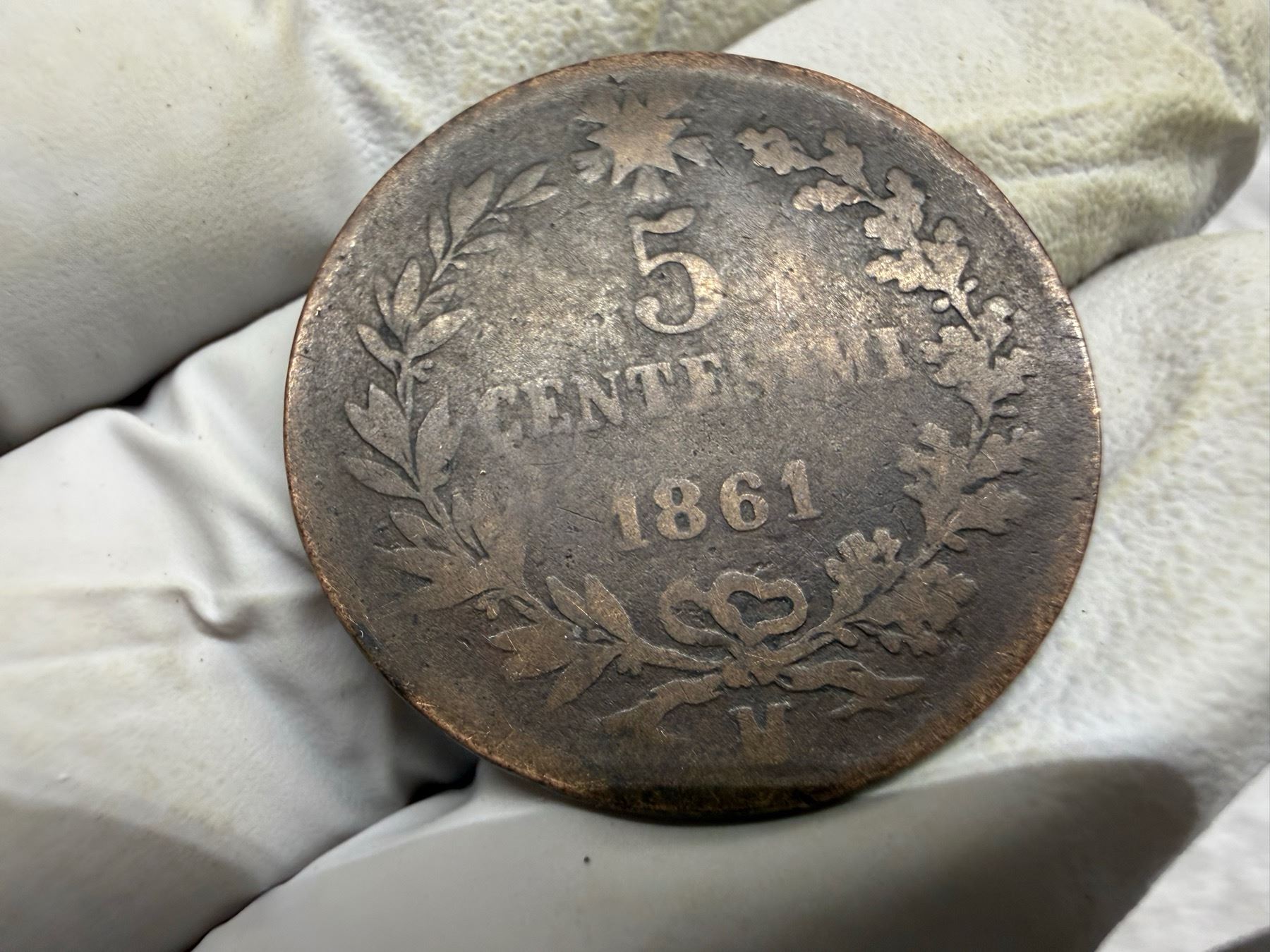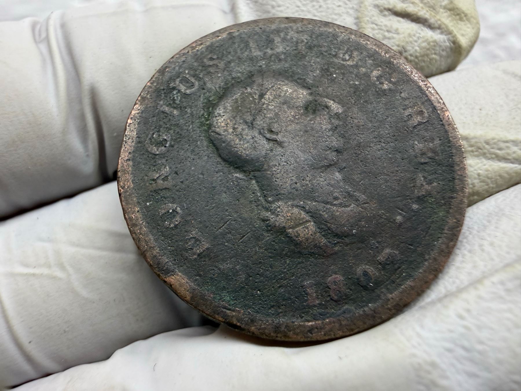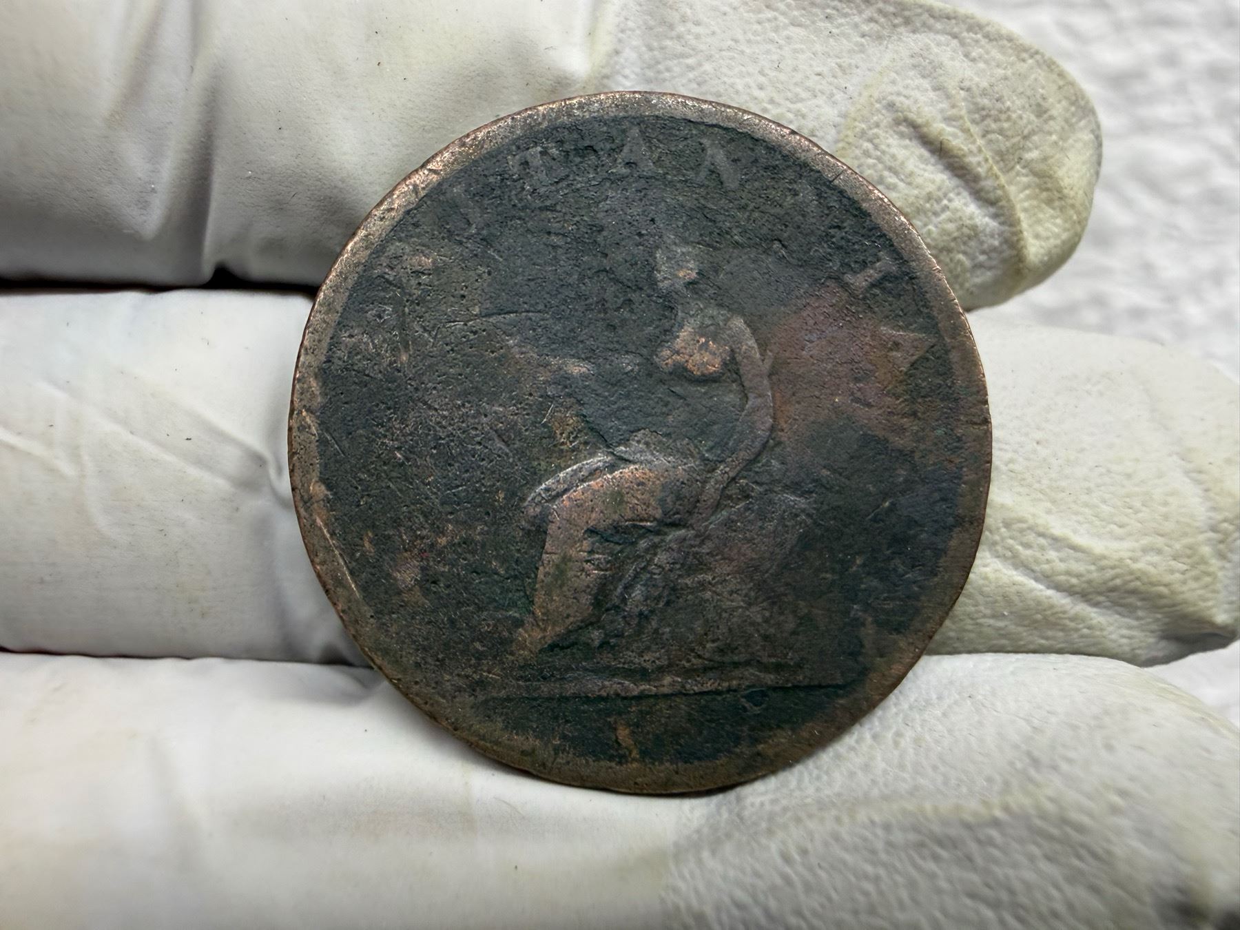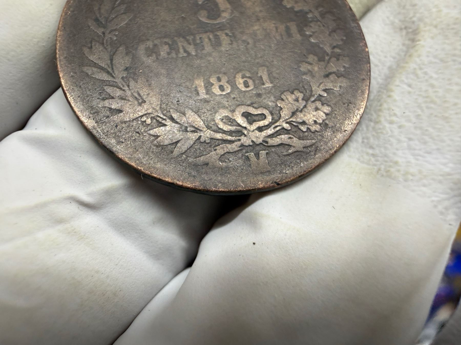 BRAZIL 20 RÉIS COIN FROM THE REIGN OF EMPEROR PEDRO II, LIKELY DATED 1869 BASED ON THE PORTRAIT AND LETTERING; BRONZE /// COLLECTIBLE 1806 OR 1807 BRITISH HALFPENNY FEATURING KING GEORGE III ON THE OBVERSE AND SEATED BRITANNIA ON THE REVERSE; COPPER /// ANTIQUE ITALIAN 5 CENTESIMI COIN FEATURING THE PORTRAIT OF KING VICTOR EMMANUEL II OF ITALY; BRONZE