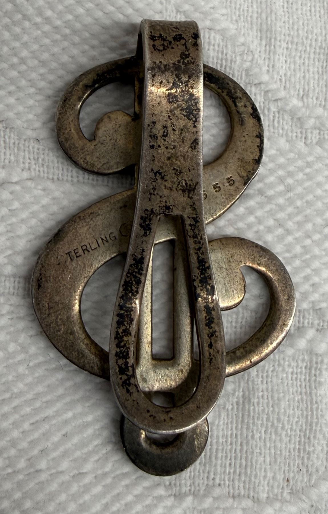 VINTAGE STERLING SILVER MONEY CLIP SHAPED LIKE A DOLLAR SIGN; R. BLACKINTON & CO.