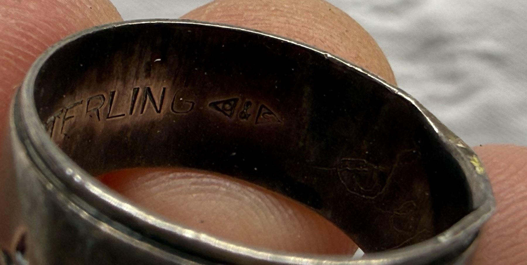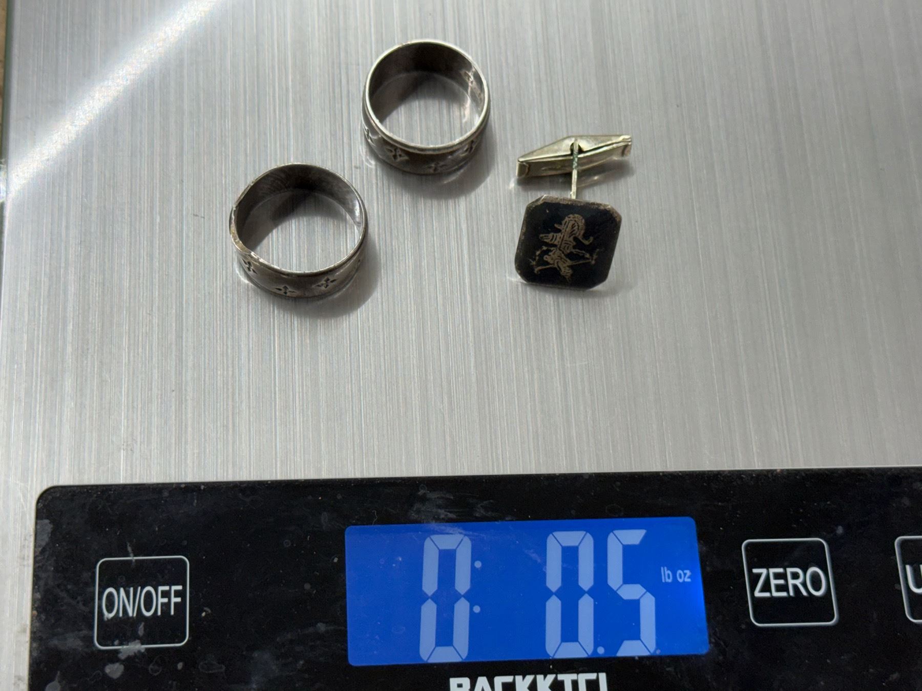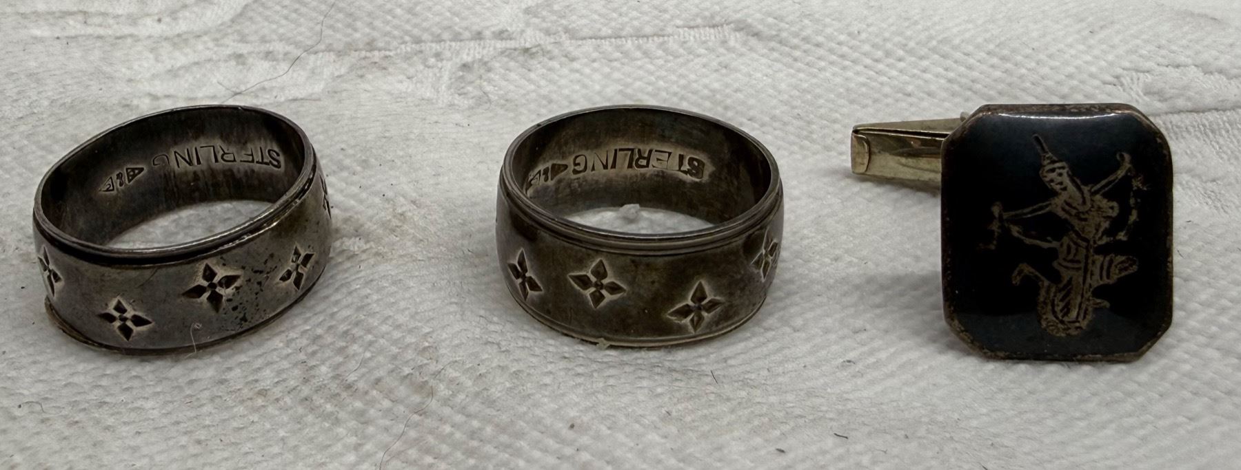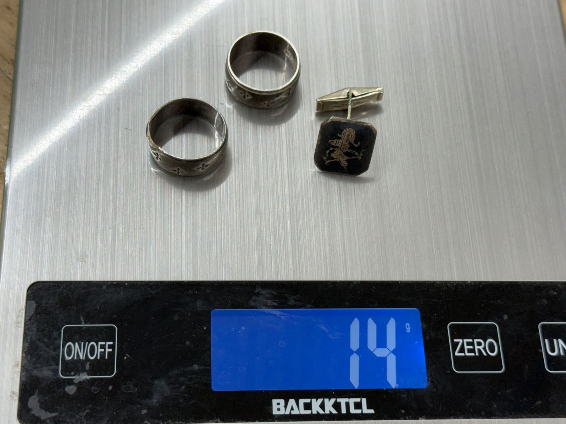 ANTIQUE STERLING SILVER RINGS AND CUFF LINK
