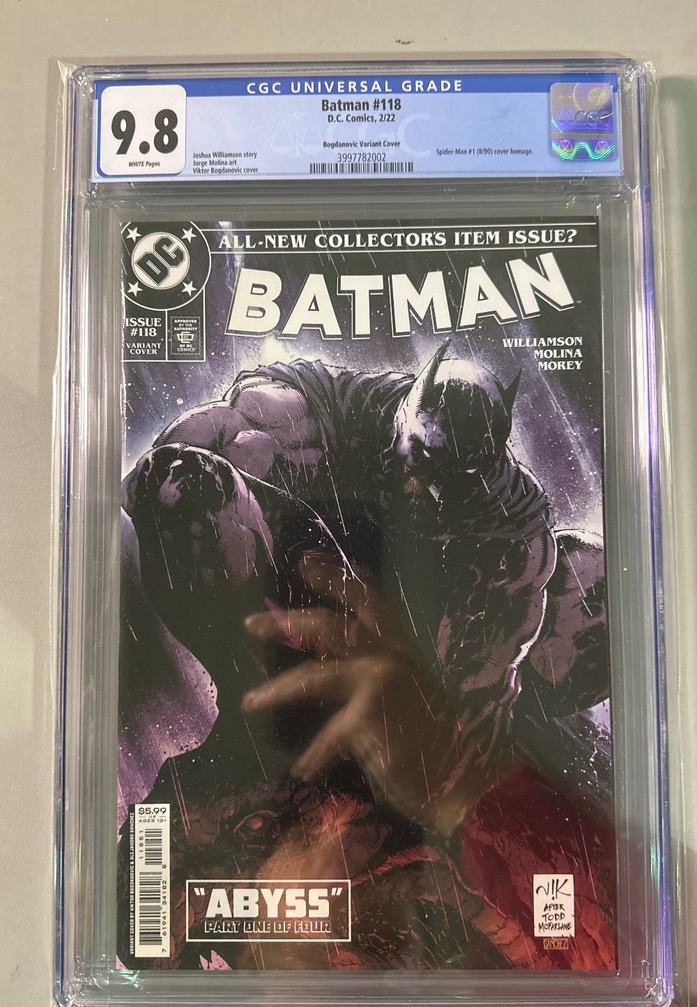CGC Universal Grade 9.8 comic, Batman #118, published by DC Comics in February 2022. Features the Viktor Bogdanovic variant cover. SKU: IC-20260313-1038-76-J-260313-10