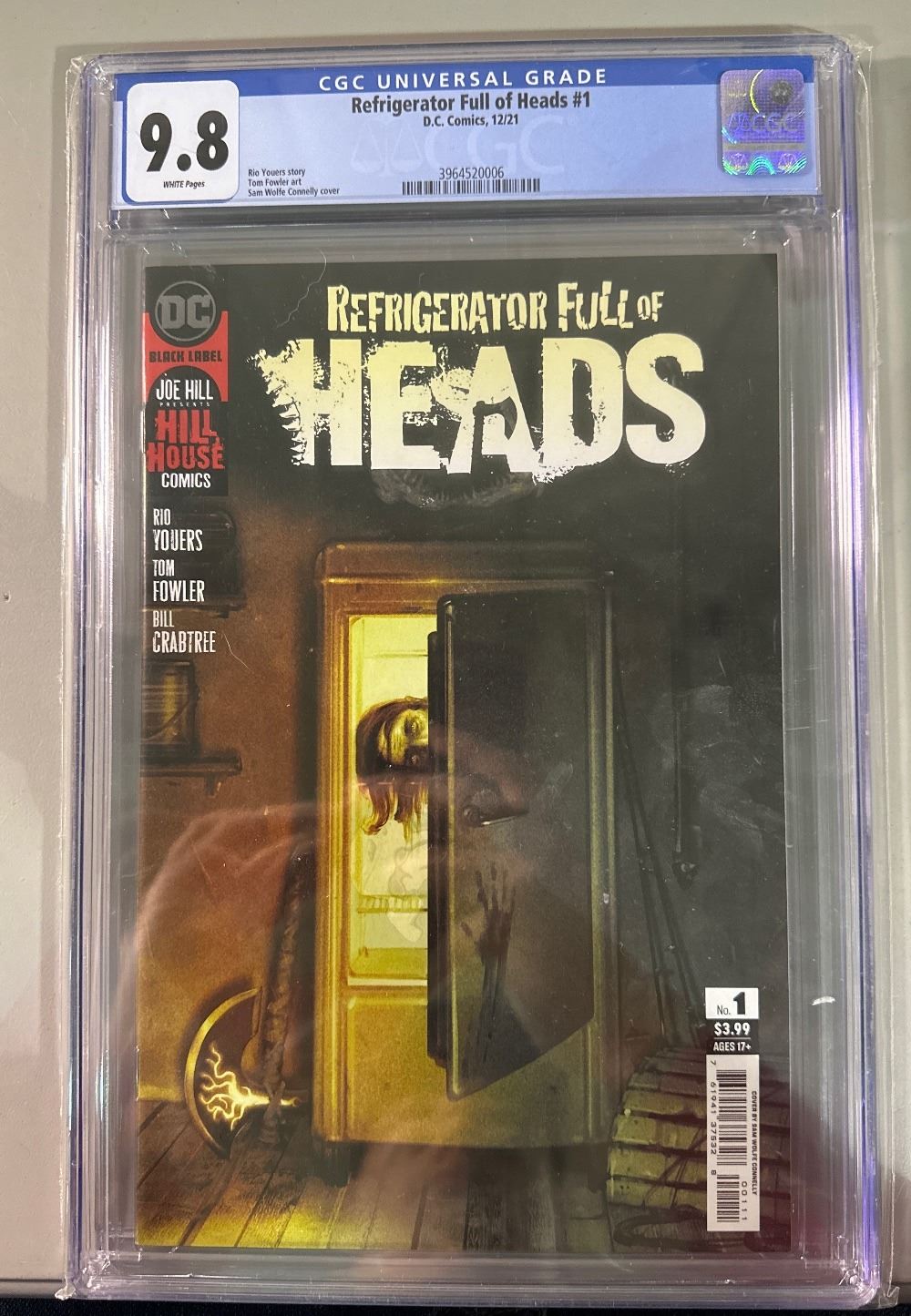 CGC graded 9.8 comic book. Refrigerator Full of Heads #1, published by DC Comics under the Black Label and Hill House Comics imprints in 2021. Story by Rio Youers and cover by Sam Wolfe Connelly. [2, 4] SKU: IC-20260313-1038-76-J-260313-13