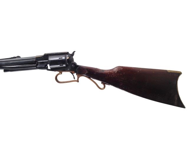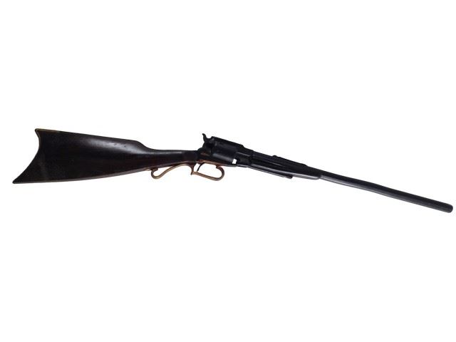 Django(Jamie Foxx) hero, screen used, rubber revolving "Remington 1858 Cattleman's Carbine .44 caliber".(35"x5")