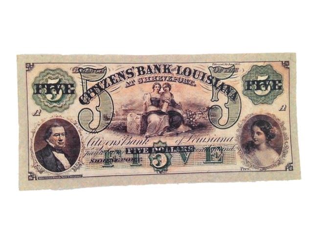 Lot 58 Citizen's Bank of Louisiana Five dollar bank note Movie Props