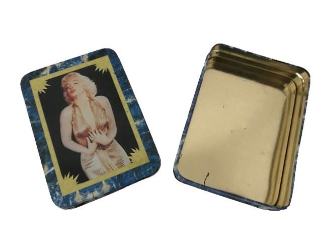 Marilyn Monroe vintage tin distributed by Presents - a division of Hamilton Gifts (1990 Estate of Marilyn Monroe. Condition: signs of wear on the back and sides.