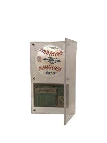 Signed Rawlings baseball by Cleveland Indian’s Gaylord Perry and Jackson trading card displayed in ultra pro acrylic case