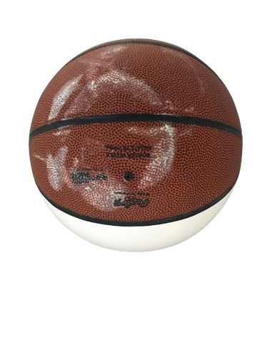 Condition: Very Good; ball is very lightly scuffed; orange portion of basketball has an off-white residue that can be removed without risk of damaging finish