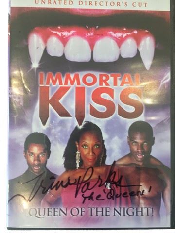 "The Muthers" and "Immortal Kiss" signed DVD's from Trina Parks personal collection. Trina Parks was the first African American singer and dancer featured in the Palm Springs Follies for 6 years from 2002-2008.