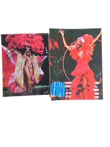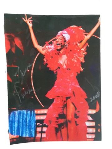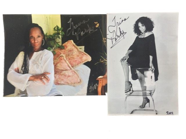 Two signed autographs from Trina Parks personal collection during her time performing in the Palm Springs Follies where she performed for 6 years. Trina Parks was the first African American performer in that show. Trina Parks was the first African American singer and dancer featured in the Palm Springs Follies for 6 years from 2002-2008. (photos range slightly in size, most are approx. 8 1/2" x 11)