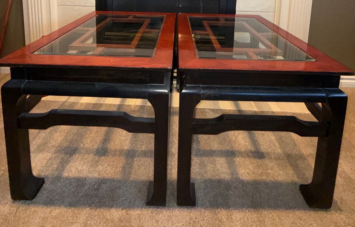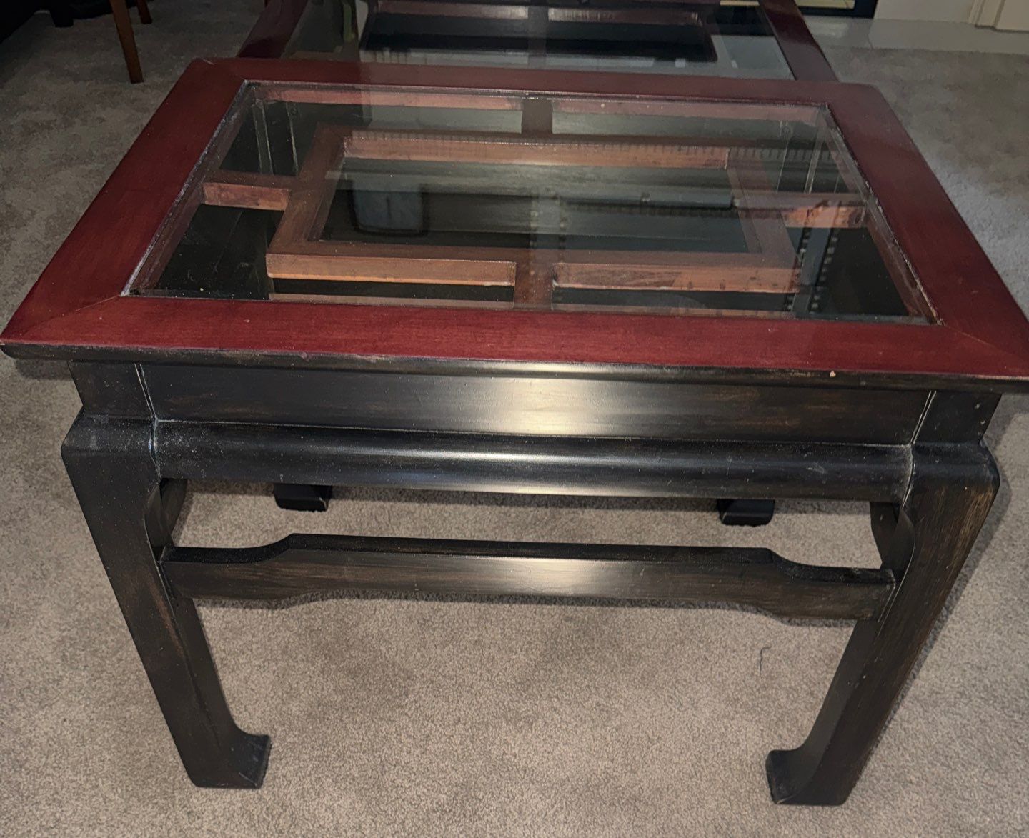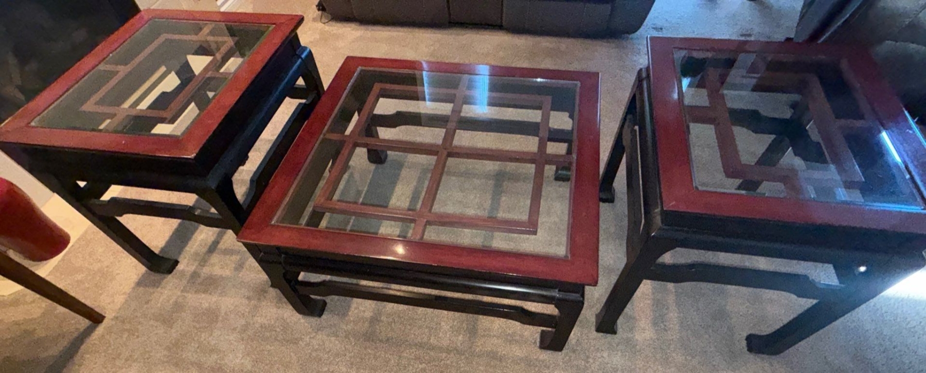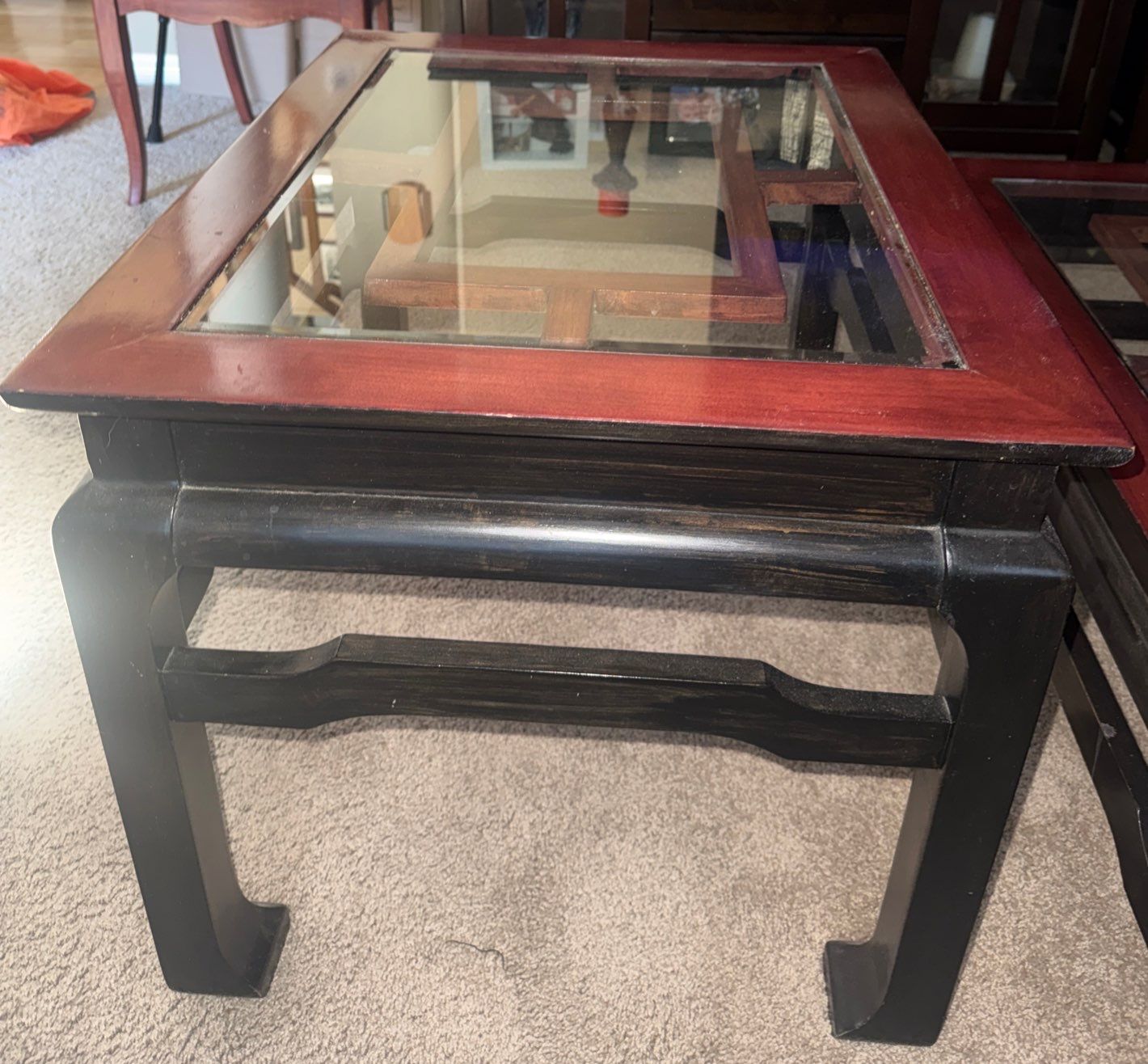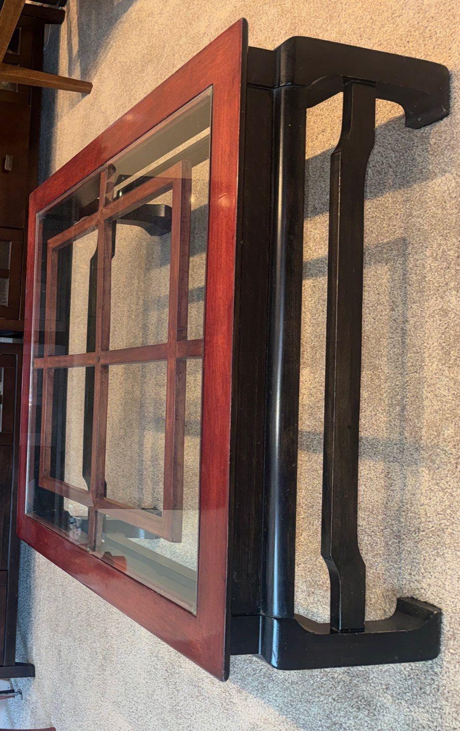 Lot 45 Circa 1980's Solid Wood Living Room Set- Beveled Glass Tops 36x36x16"tall