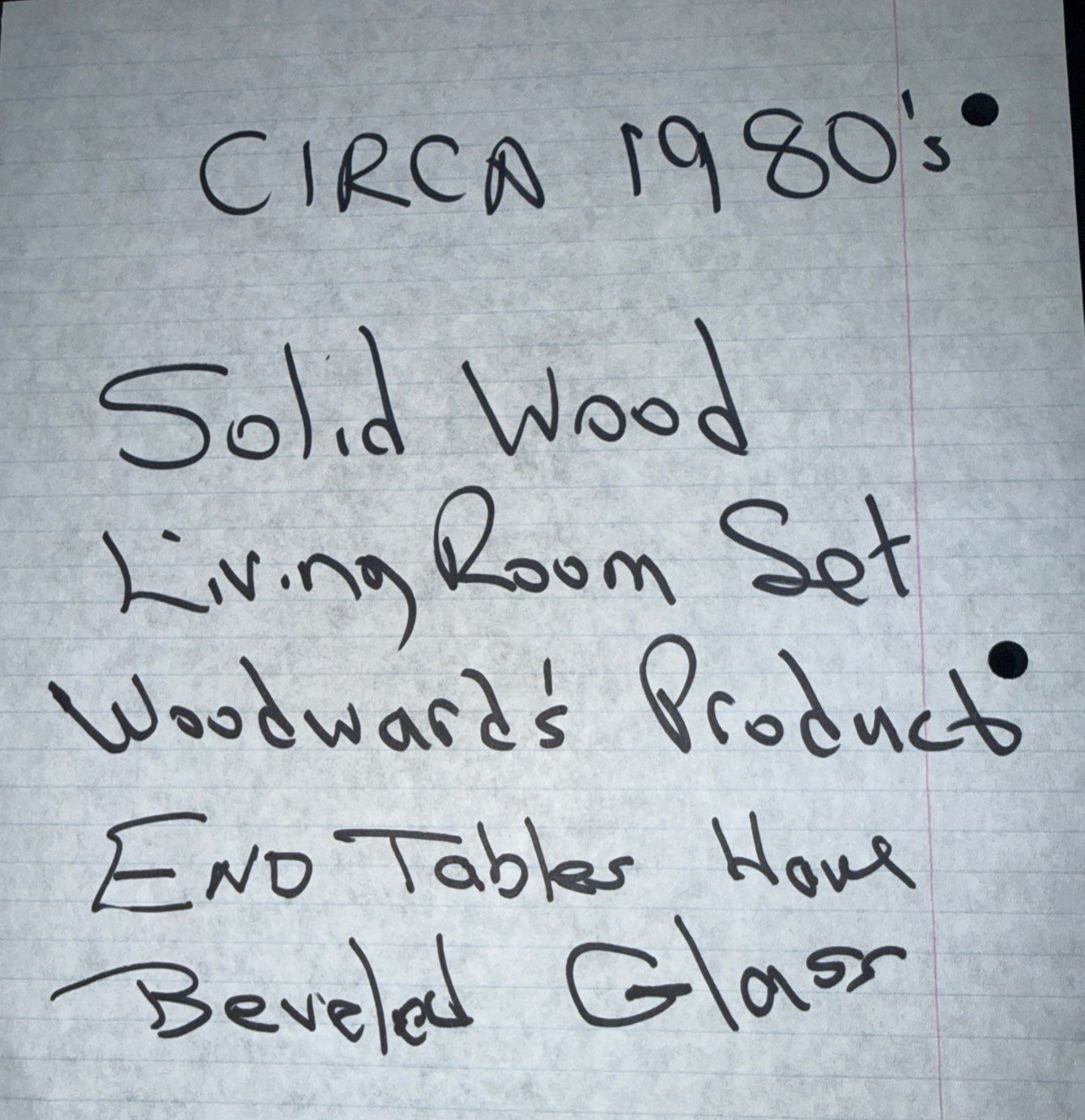 Circa 1980's Solid Wood Living Room Set-Woodward's Product Beveled Glass Tops
