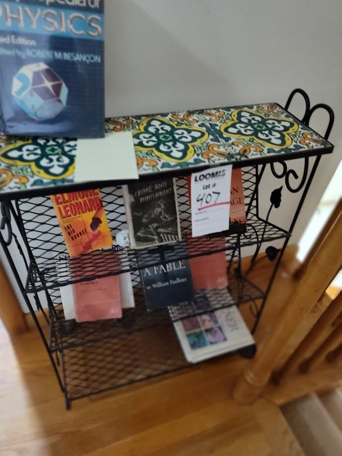 MID CENTURY METAL STAND W CERMANIC TOP AND BOOKSThis sales lot consists of only the item being described. Any and all additional items that may be in the image is NOT included. To include any items sitting on the described item, next to the described item , or under the described item.