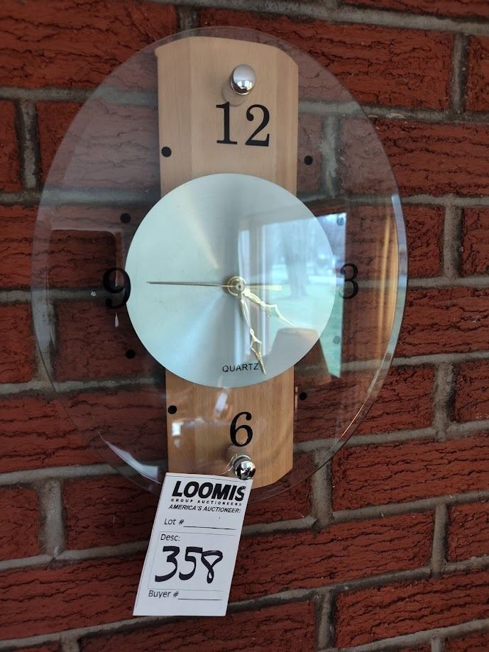 Lot 358H GLASS/ WOOD WALL CLOCK