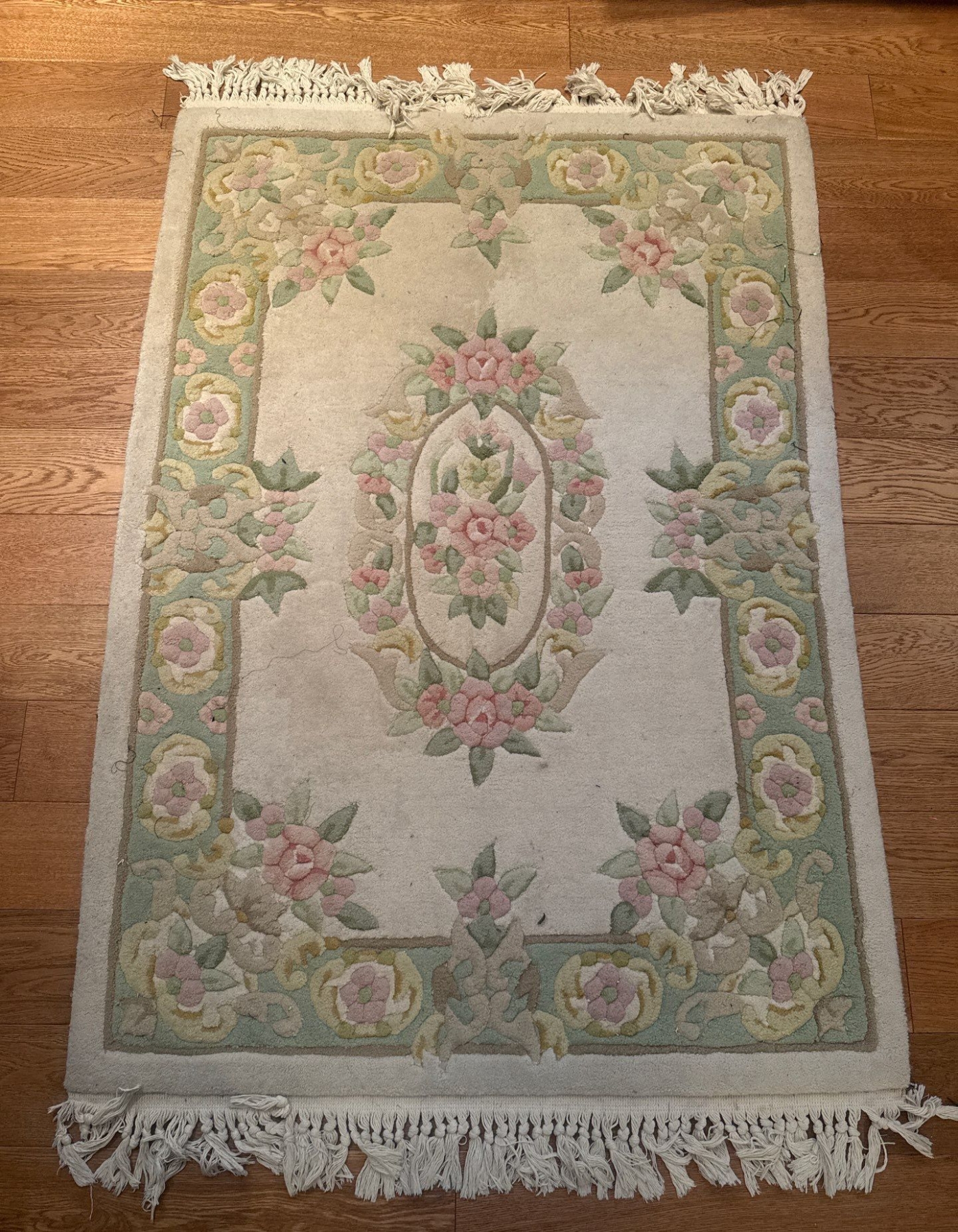 Lot 62 Floral Handmade Wool Woven Rug 65x42"tall