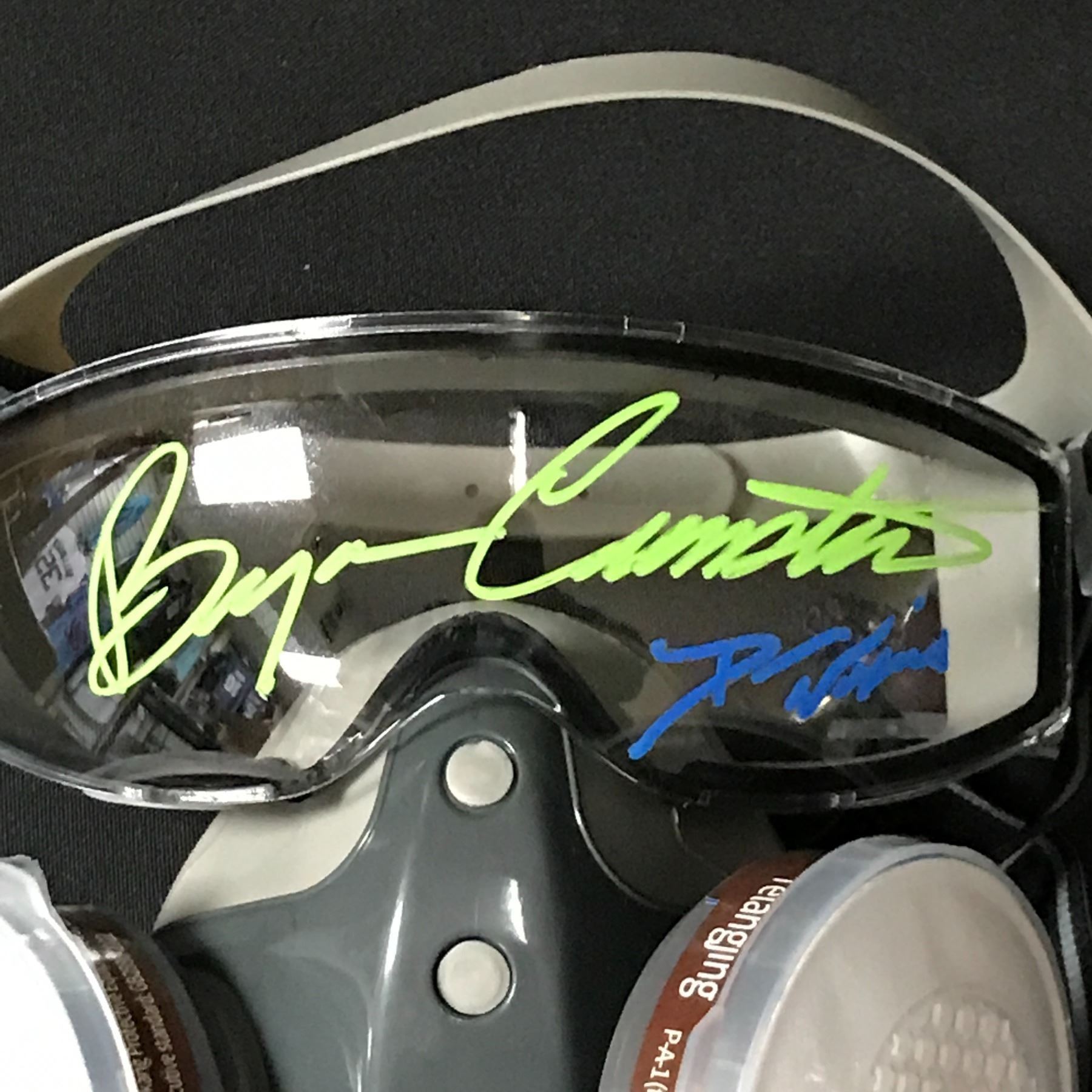 Lot 197 BRYAN CRANSTON AND DEAN NORRIS DUAL SIGNED GAS MASK - KB COA