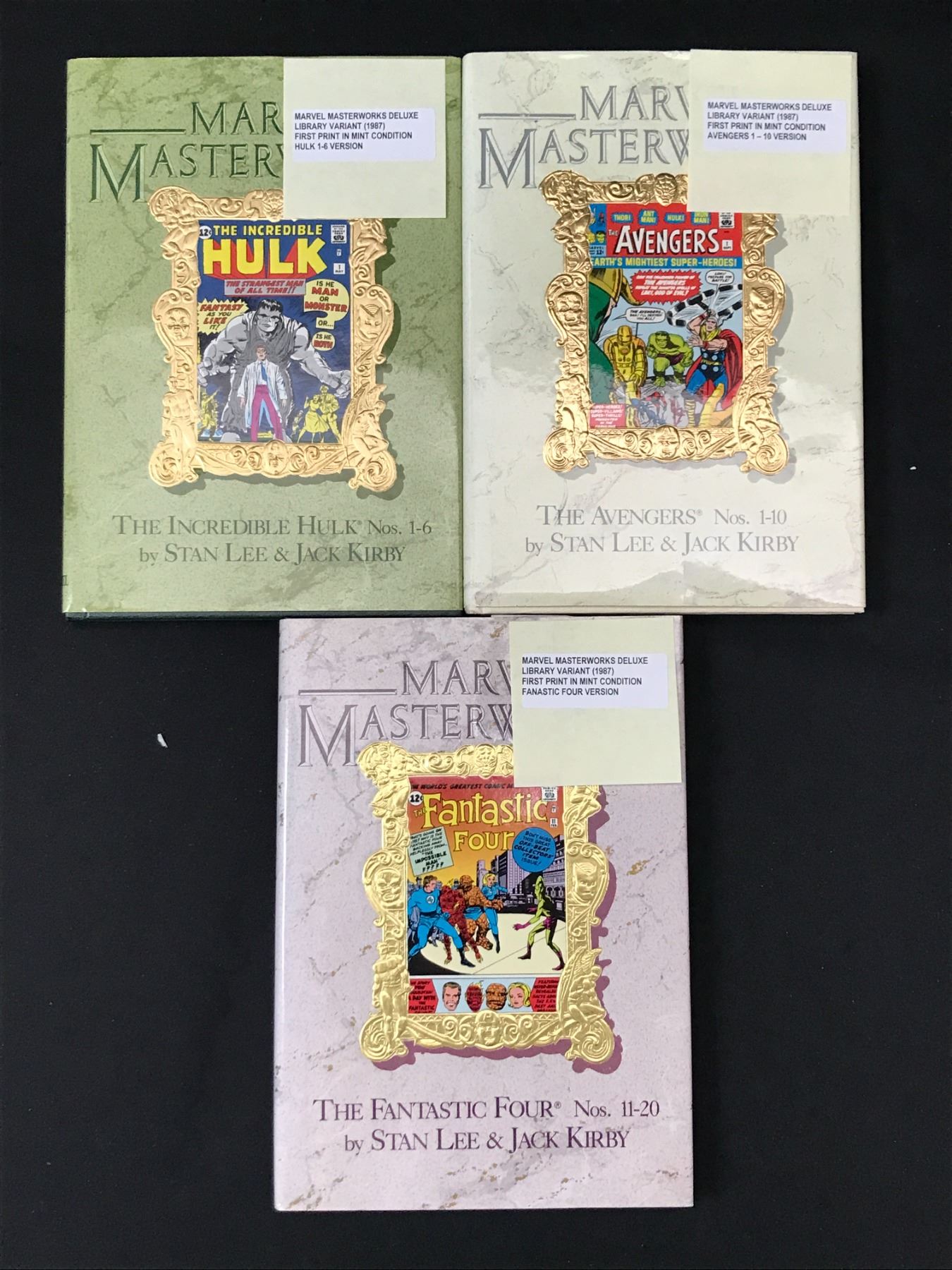 Lot 207 LOT OF 3 MARVEL MASTERPIECES DELUXE LIBRARY VARIANTS (1987) FIRST PRINTS - 3 DIFFERENT VERSIONS