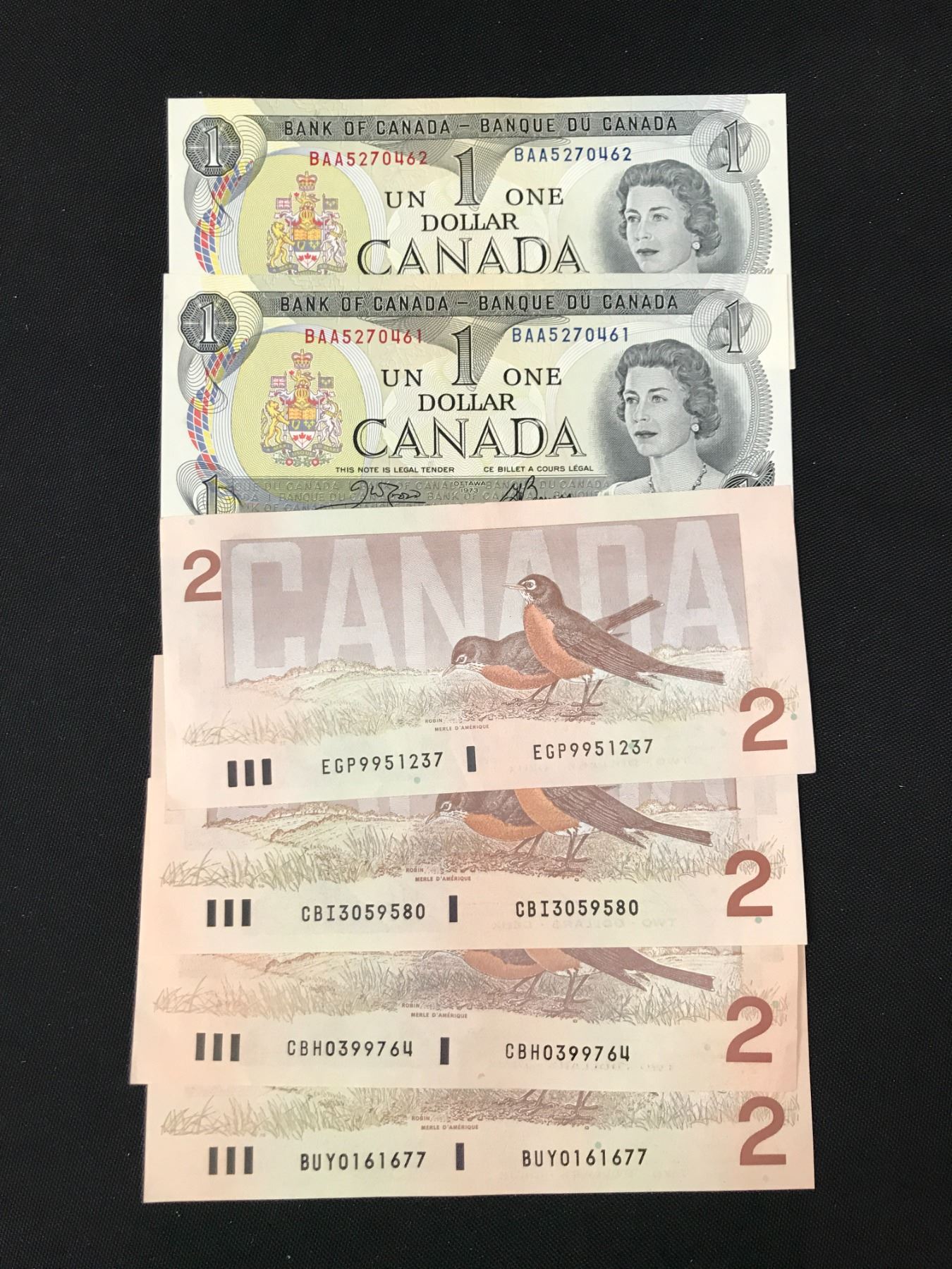 Lot 254 CANADIAN 1 AND 2 DOLLAR BILLS LOT