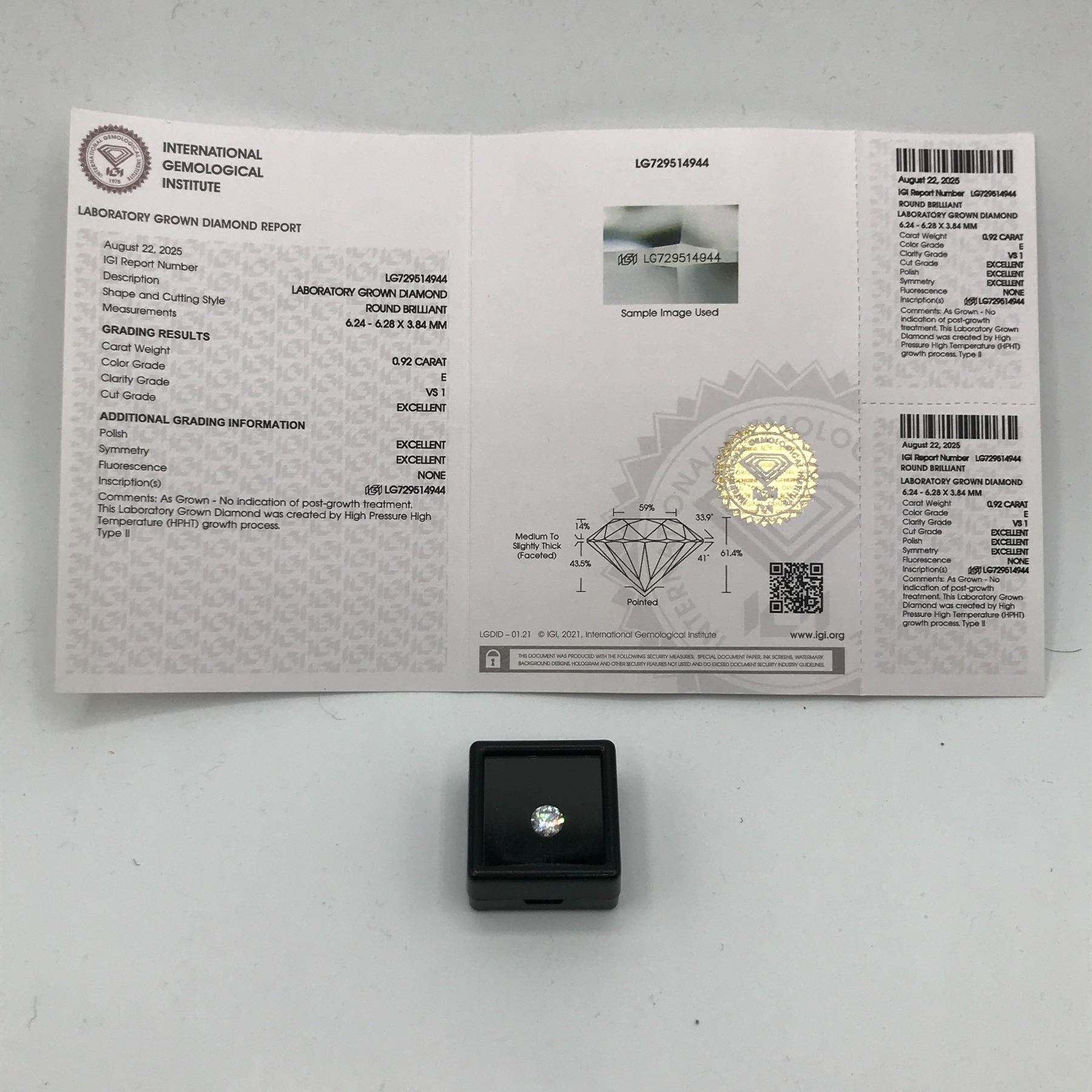 Lot 281 0.92 CARAT LAB GROWN DIAMOND WITH IGI REPORT