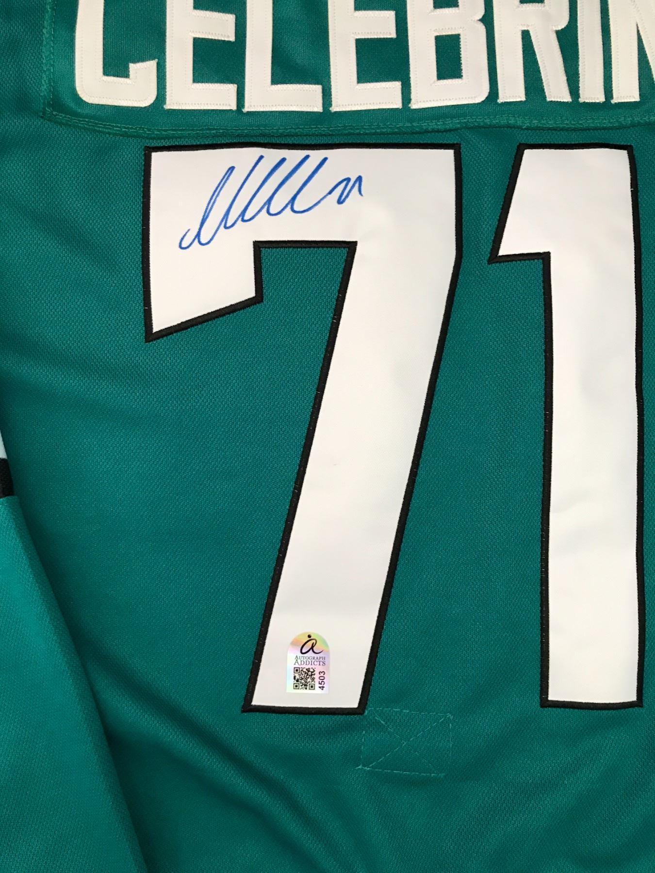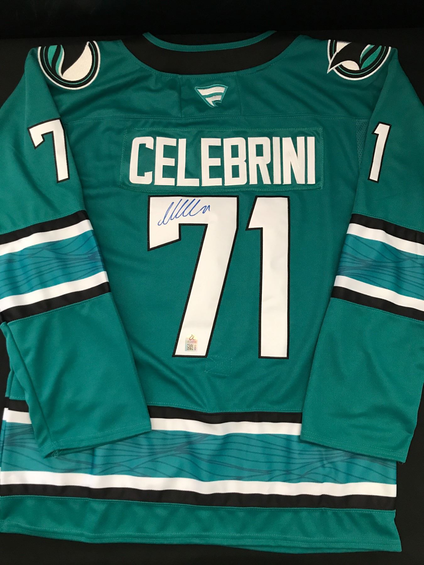 Lot 392 MACKLIN CELEBRINI SIGNED SAN JOSE SHARKS CUSTOM JERSEY - AUTOGRAPH ADDICTS COA