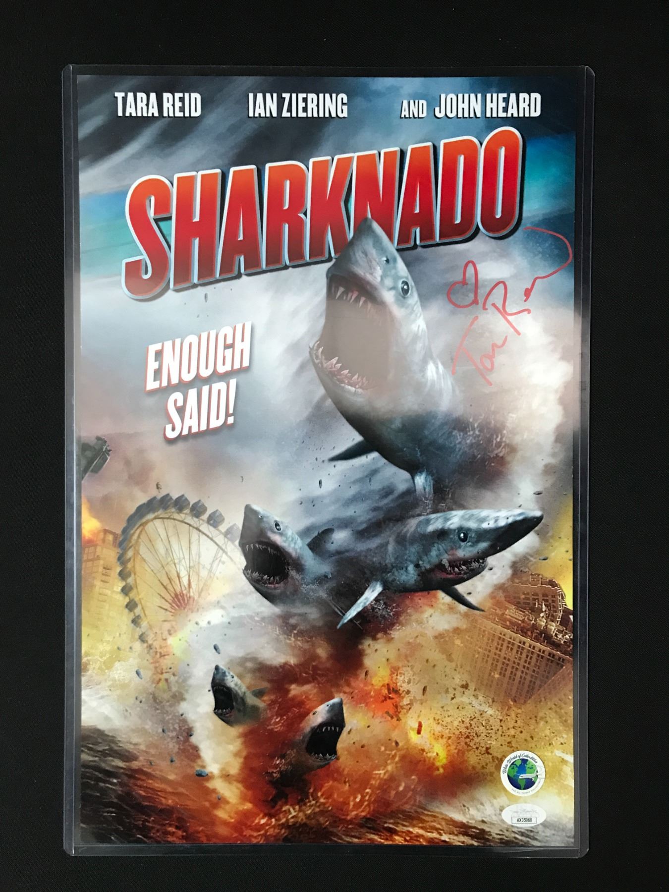 Lot 454 TARA REID SIGNED SHARKNADO 11 X 18 POSTER - WWOC COA