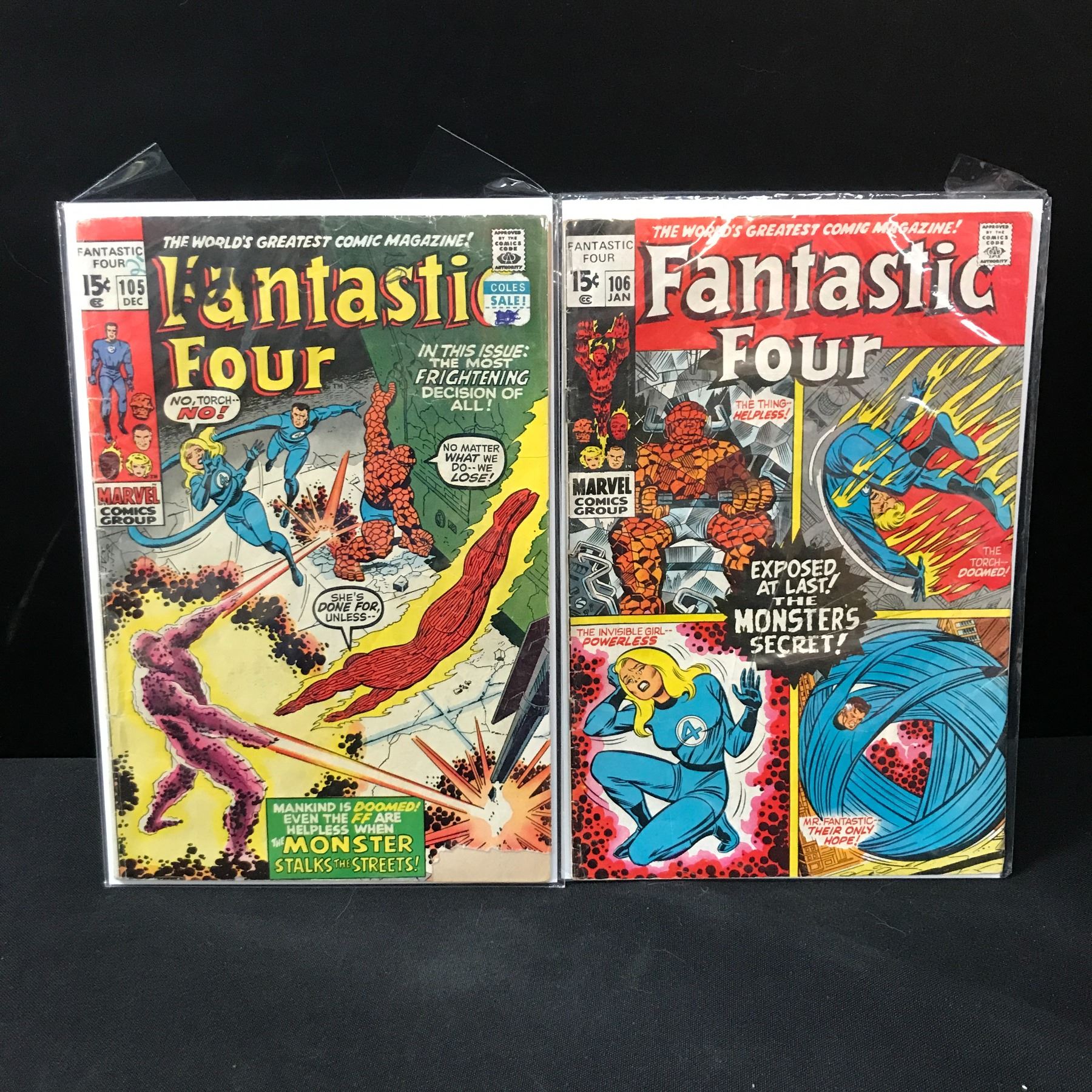 Lot 577 LOT OF 2 FANTASTIC FOUR COMICS #105-106 - MARVEL COMICS